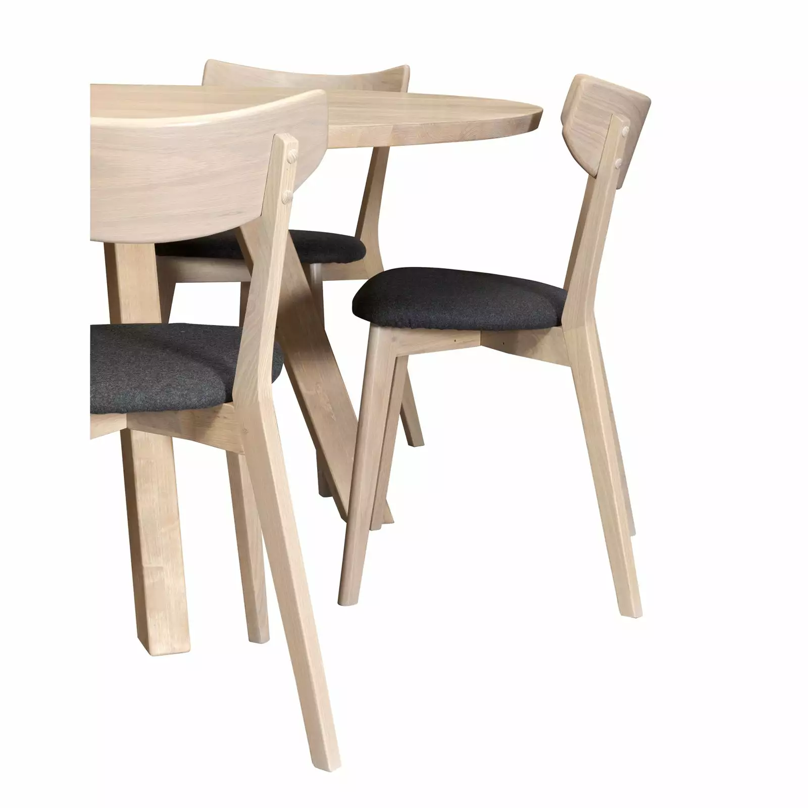 Aikaa kestävässä ruokaryhmän Swing-pöydässä on koivukansilevy umpipuisilla vinoilla jaloilla. Puhdaslinjainen Swing-pöytä tuo modernia ilmettä ruokaryhmään, jonka viimeistelevät ruotsalaisen Rowicon klassiset Ami-tuolit.