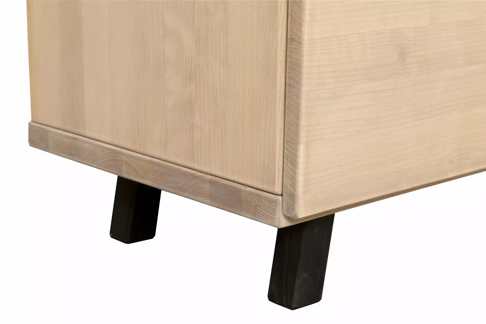 Upeassa umpipuisessa 3-ovisessa tasossa käytännöllisyyttä järjestyksen ylläpitämiseen tuovat hyllyillä täydennetyt kaappitilat. Voit vaikuttaa tason ulkonäköön ja korkeuteen valitsemalla 35 cm korkeaan runkoon 8 cm sokkelijalan, 20 cm metallijalustan tai 15 cm korkean viiston puisen jalkasarjan. Metallisissa ja puisissa jalkamalleissa kontrastia antaa musta väri.