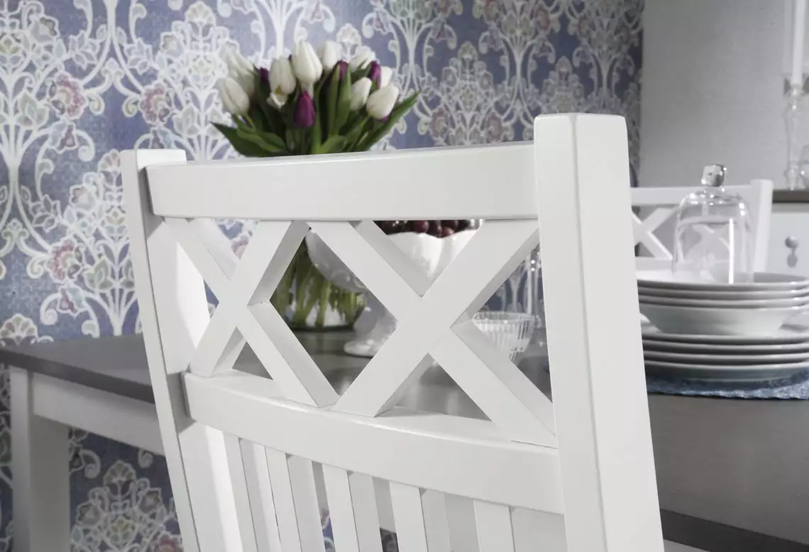 Metro- ruokapöydän tuolissa on yksityiskohtana kaunis ristikko. Tämä kestävä ja laadukas tuoli on valmistettu massiivikoivusta. Kaunis ristikkoselkäinen tuolimalli on yhdistettävissä monen erilaisen ruokapöydän kanssa.