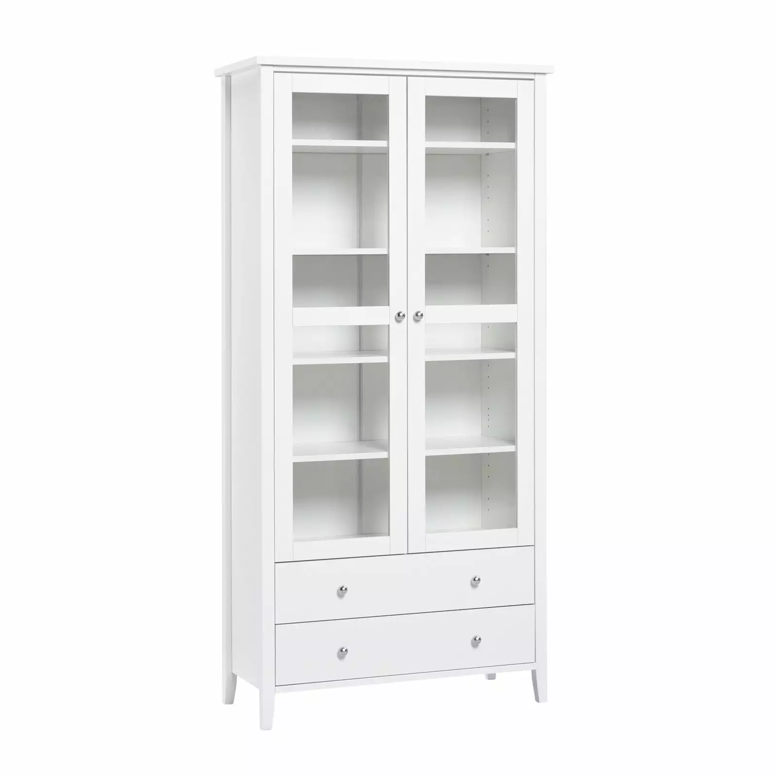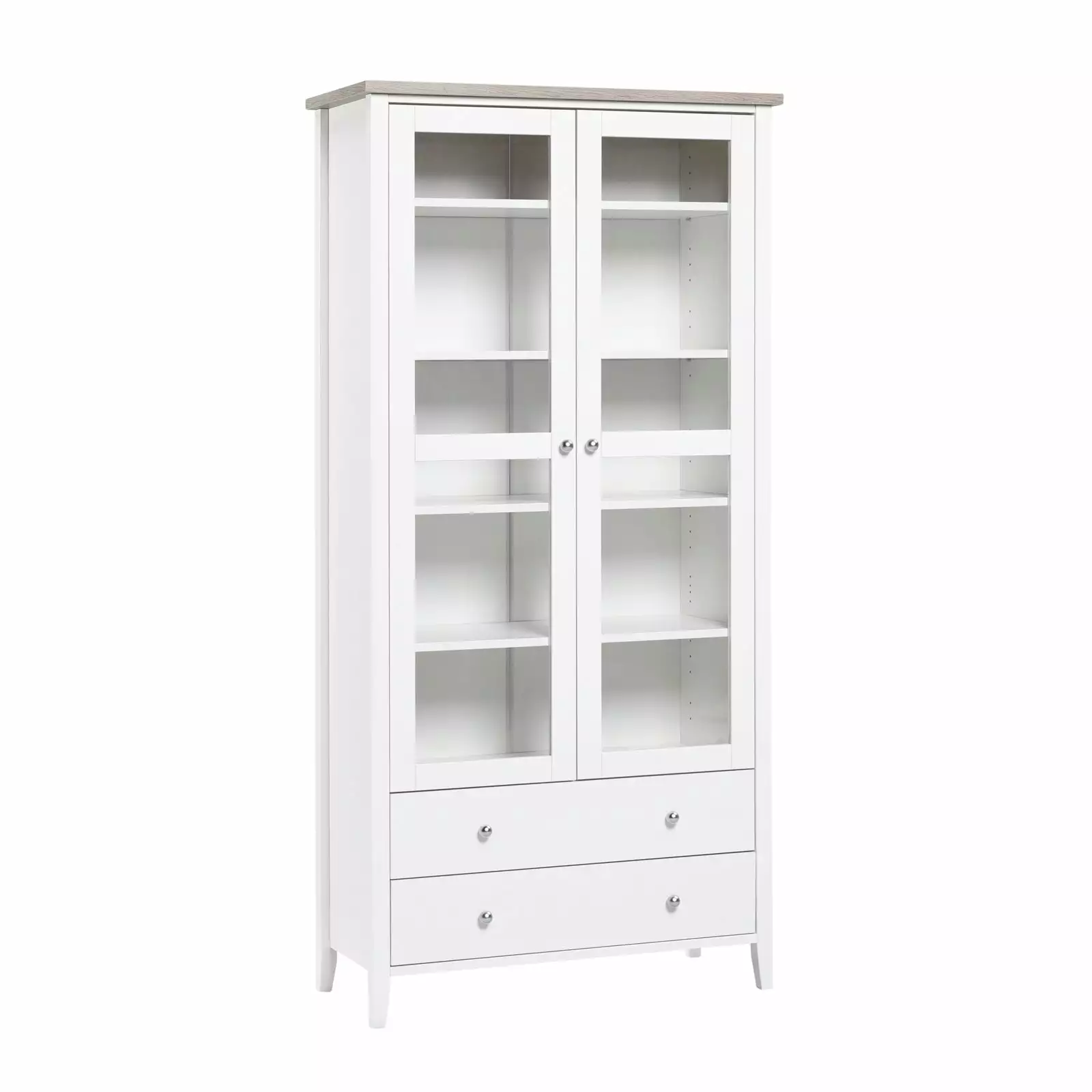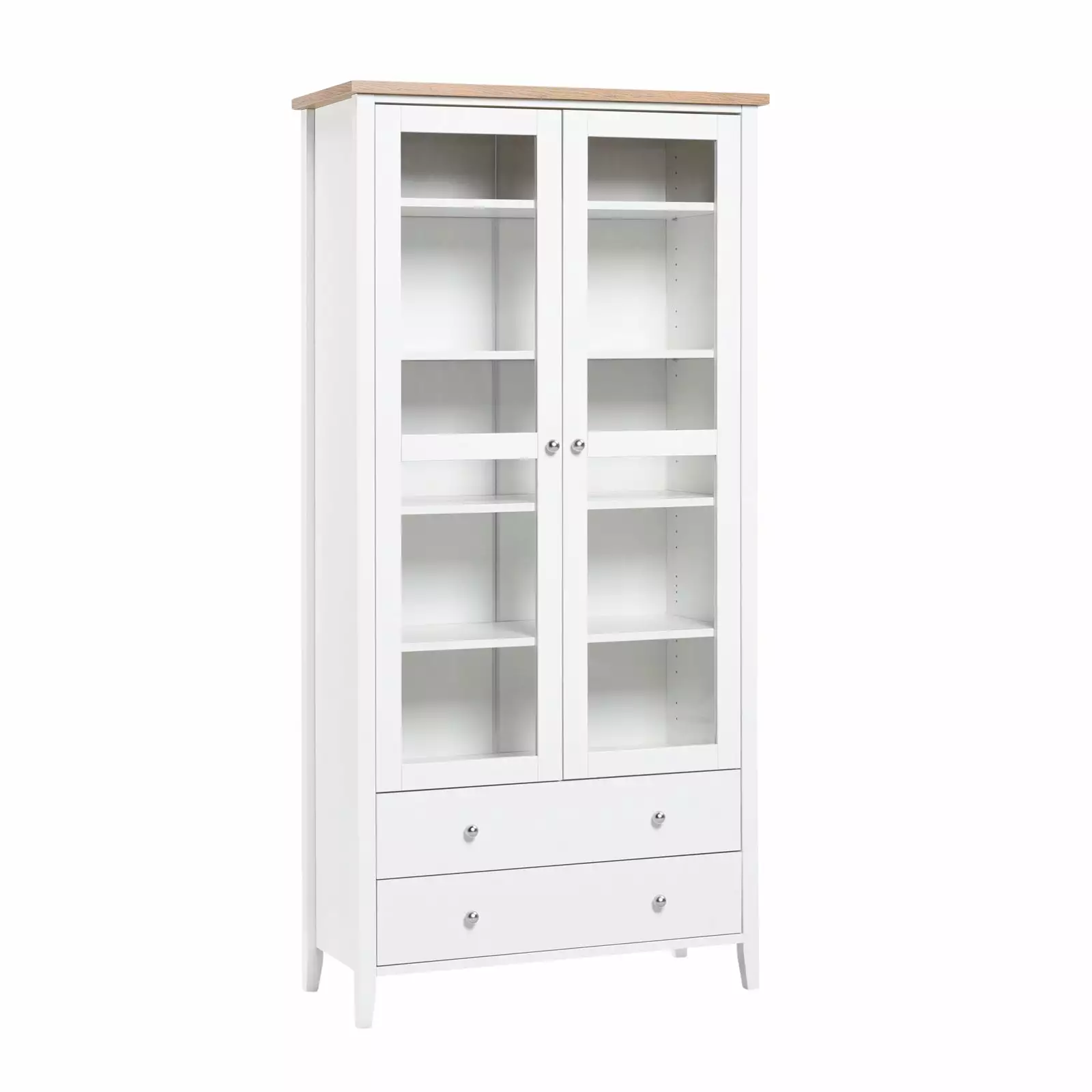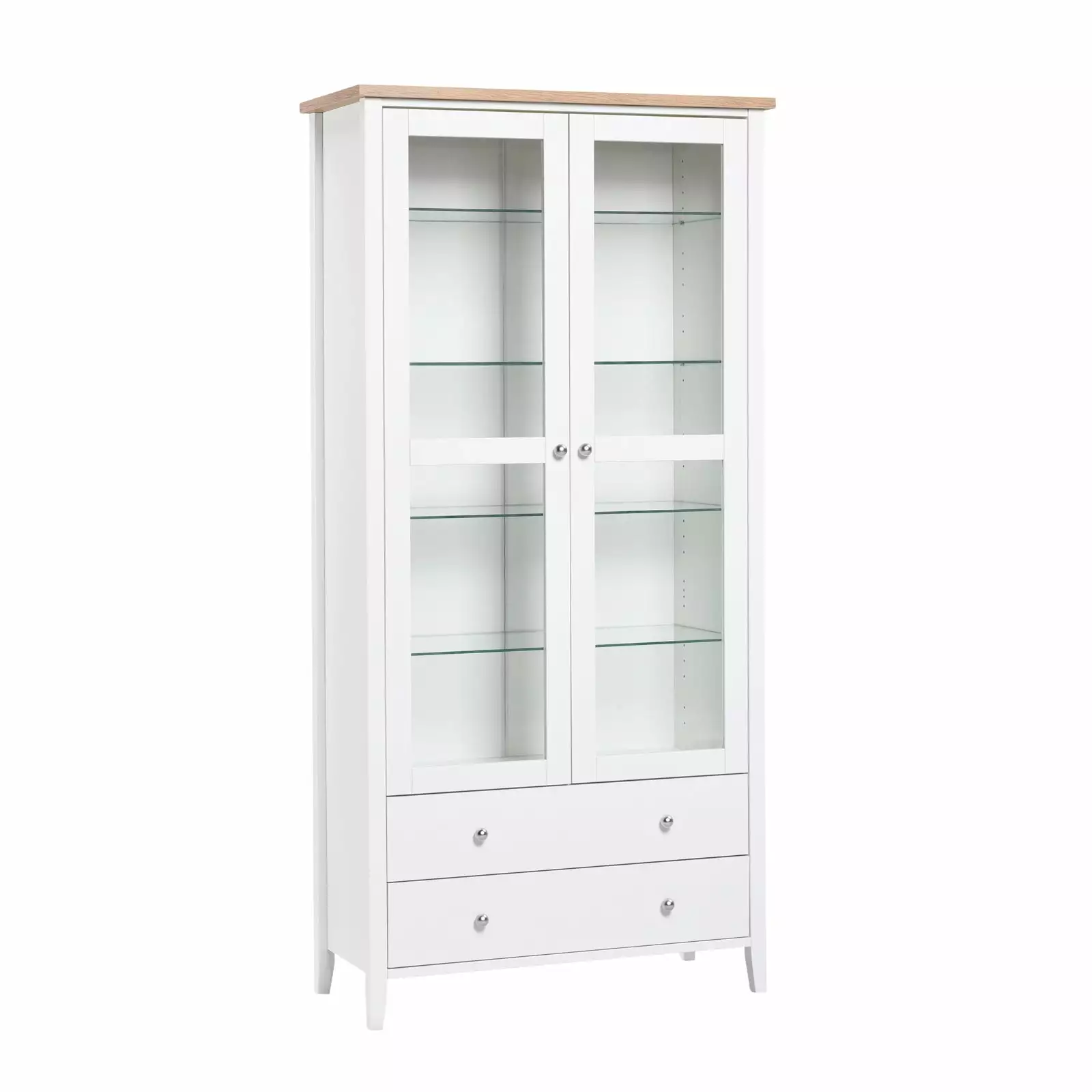 Leveän Saara-vitriinin lasikaappi tuo tullessaan näyttävää säilytystilaa, sinne missä sitä kotona tarvitaan. Vitriinin hyllyt ovat valinnan mukaisesti levyä tai lasia. Monikäyttöisessä vitriinissä on myös laatikkotilaa silmiltä suojassa.