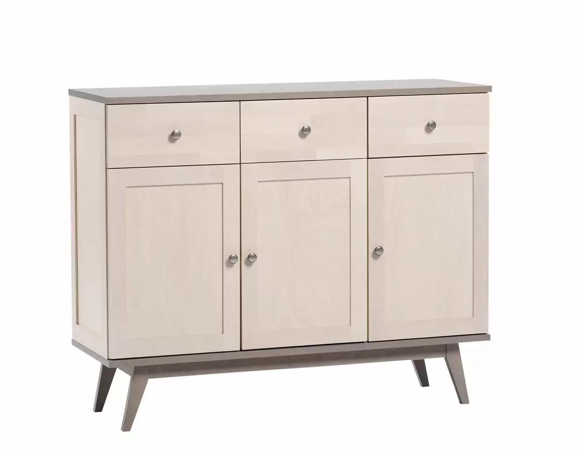 Vuokatti-sarjan leveä senkki tuo paljon monipuolista säilytystilaa kodin eri tiloihin. Senkin ylälaatikoissa pientavarat pysyvät järjestyksessä ja ovikaapeissa on tilaa isommille tavaroille. Vuokatti-senkki mahdollistaa näppärästi esineiden pitämisen kauniisti esillä laskutason päällä, tai siististi poissa silmistä.