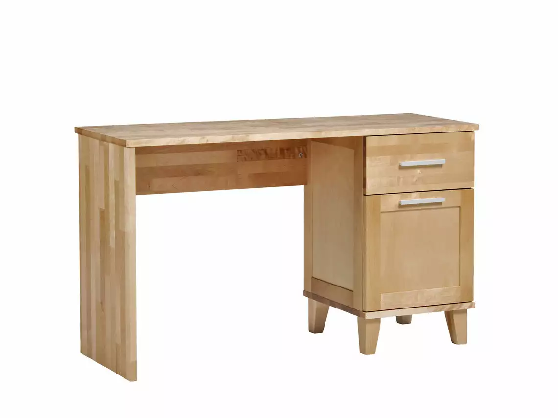 Vuokatti-sarjan perinteinen ja kestävä työpöytä aikuiselle, koululaiselle tai opiskelijalle. Näppärän kokoinen kirjoituspöytä sopii pienempäänkin huoneeseen tai opiskelija-asuntoon. Pöydän mukana tulee säilytystilaa vetolaatikon ja ovikaapin muodossa. Vuokatti-työpöytä on helppo yhdistää muihin Vuokatti-kalusteisiin.