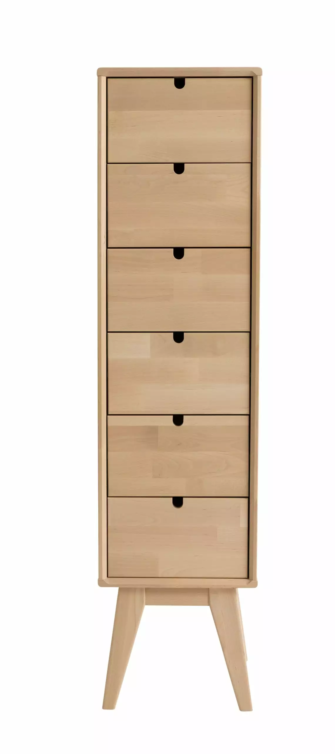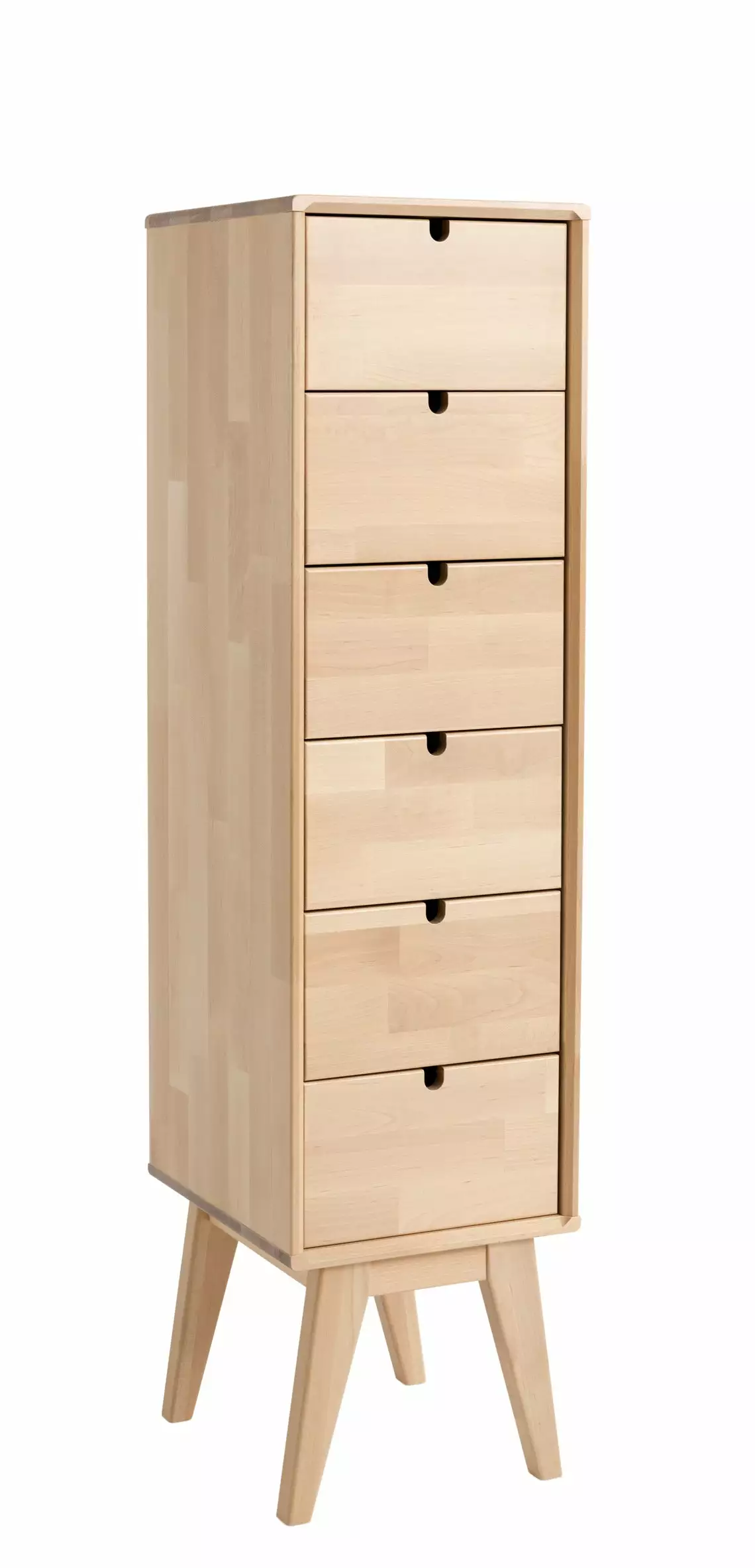 Hauska Notte-sarjan lipasto on täynnä pieniä yksityiskohtia. Lipaston jalkasarja on koivunvärinen ja sen lipasto-osan värivaihtoehdot ovat luonnonvärinen lakattu koivu ja maalattu valkoinen. Tyylikään elegantti, korkea Notte-lipasto soveltuu erinomaisesti useisiin eri tiloihin kotonasi. Kapea, mutta korkea muotoilu tekee lipastosta kevyen näköisen ja mahdollistaa sijoittelun pieneenkin tilaan tuoden suuren määrän säilytystilaa.