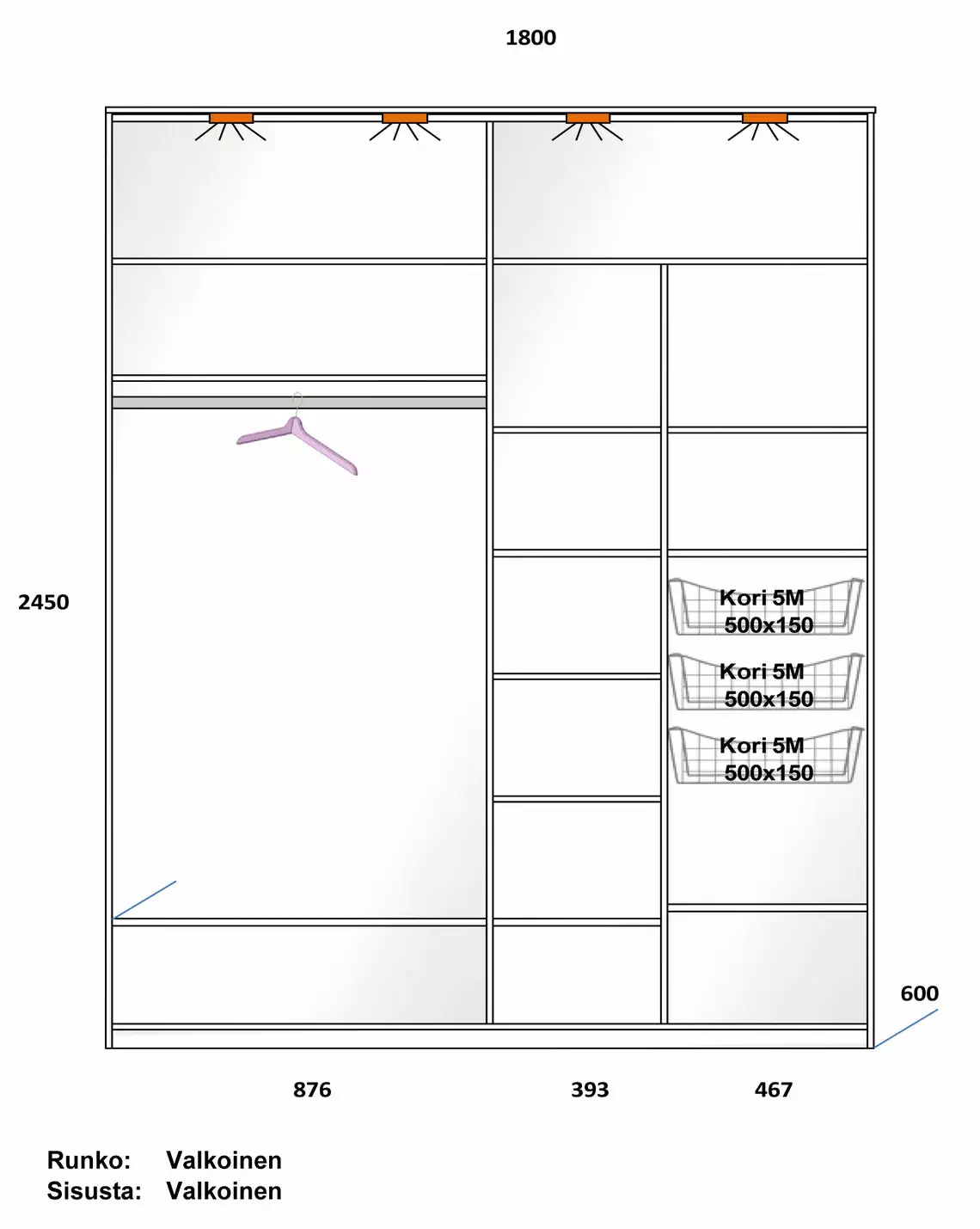 Lakeus Design Oy LAKEUS DESIGN Liukuovikaappi Mittatilauksena 180 X 60 X 245 Cm