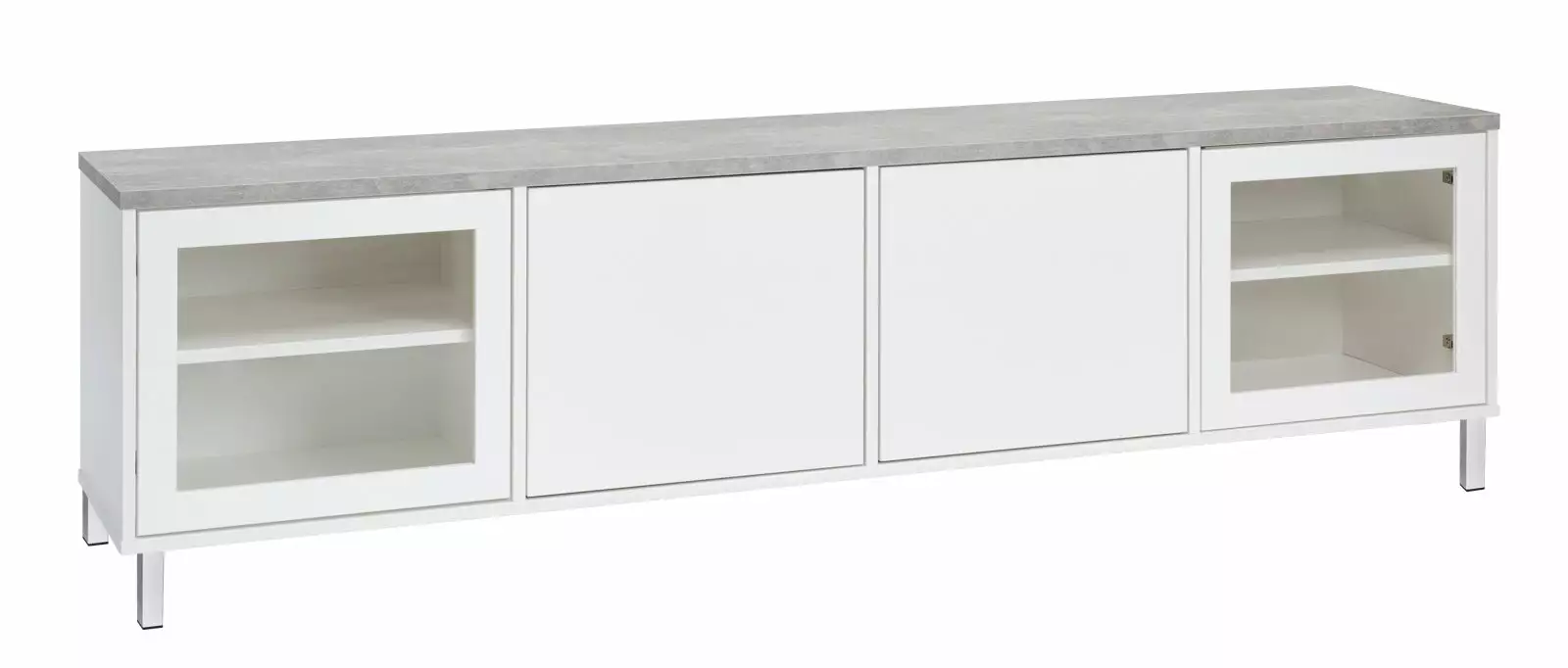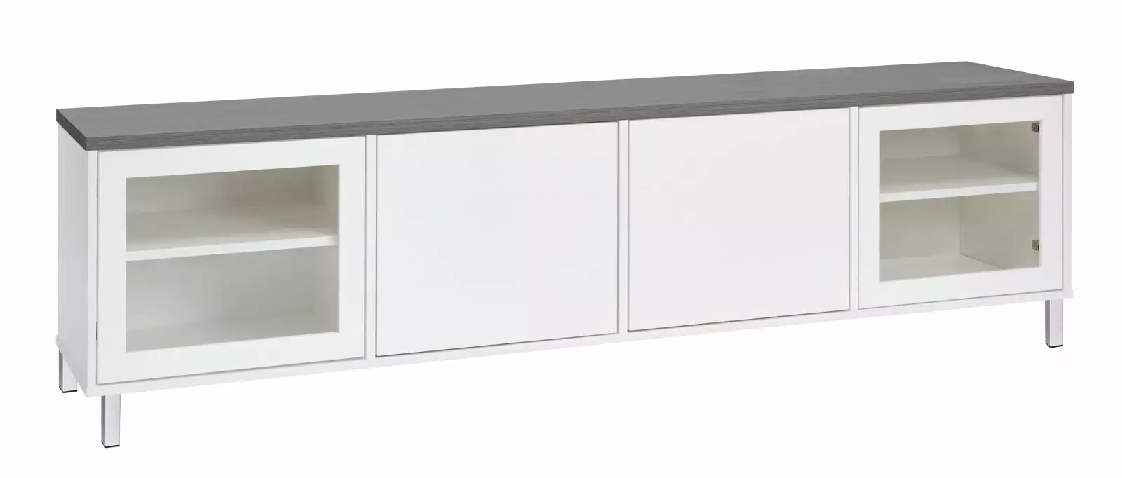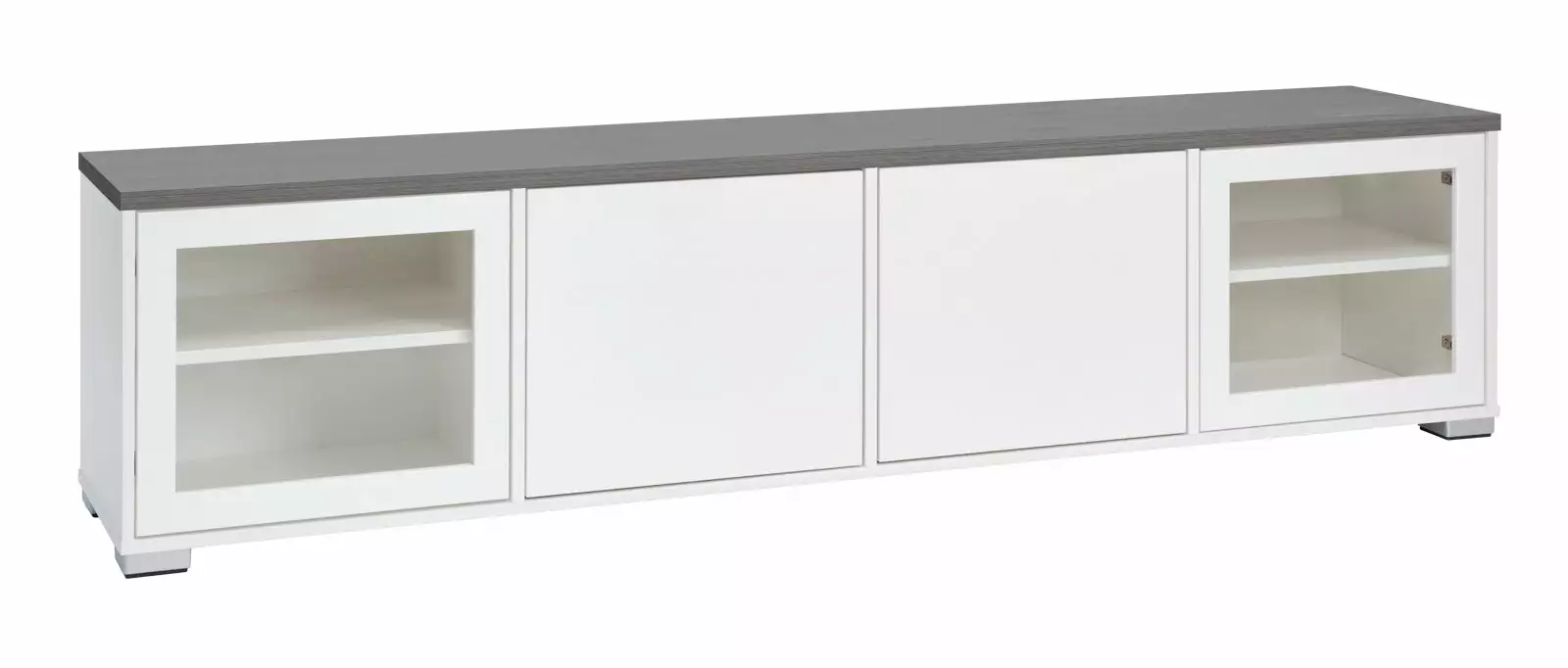 Kivi-sarjan leveä tv-taso toimii myös näppäränä matalana tasona, joten se tuo reilusti säilytys- ja laskutilaa eri tiloihin. Kivi-tv-tason avulla television ja oheislaitteet saa sijoiteltua parhaalla mahdollisella tavalla. Kodin viihdekeskuskäytössä siinä on reilusti tilaa medialaitteille – tasotilan lisäksi keskiosan ovikaapit ja niiden molemmin puolin kahden lasikaapin verran. Kaikissa kaapeissa on johtoaukot kaapeleille ja kaappitiloja saa säädeltyä sopiviksi siirrettävillä välihyllyillä.
