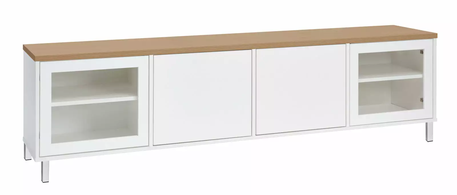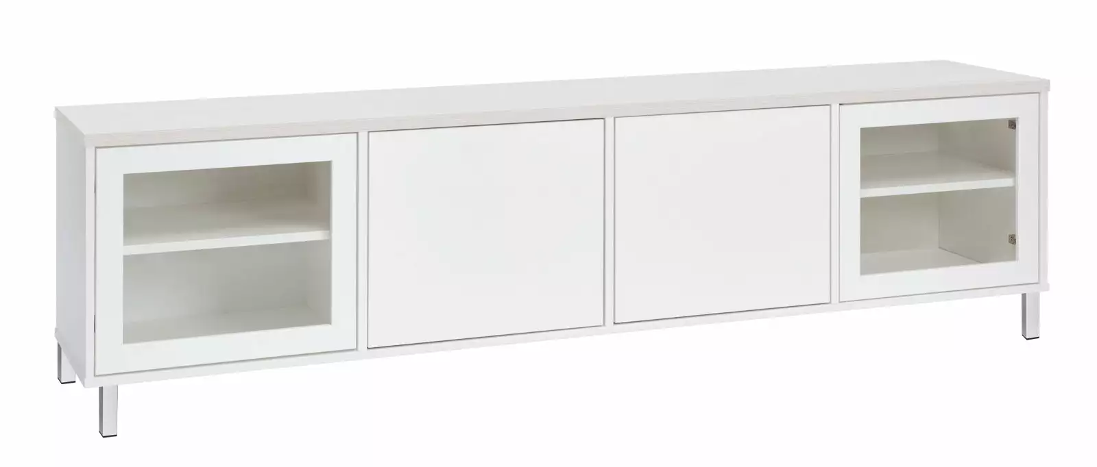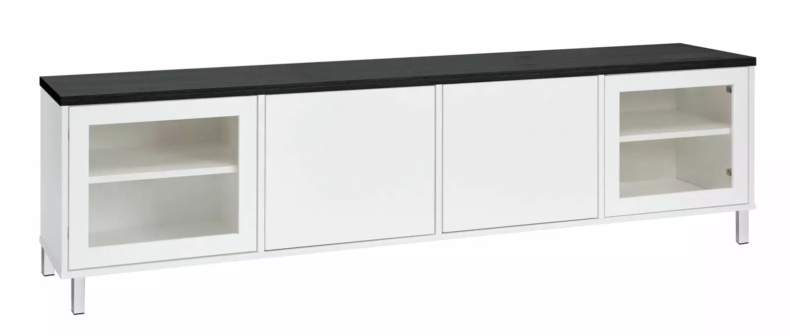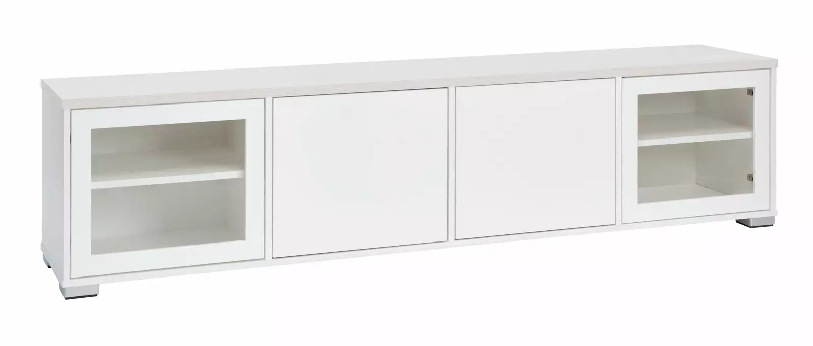 Kivi-sarjan leveä tv-taso toimii myös näppäränä matalana tasona, joten se tuo reilusti säilytys- ja laskutilaa eri tiloihin. Kivi-tv-tason avulla television ja oheislaitteet saa sijoiteltua parhaalla mahdollisella tavalla. Kodin viihdekeskuskäytössä siinä on reilusti tilaa medialaitteille – tasotilan lisäksi keskiosan ovikaapit ja niiden molemmin puolin kahden lasikaapin verran. Kaikissa kaapeissa on johtoaukot kaapeleille ja kaappitiloja saa säädeltyä sopiviksi siirrettävillä välihyllyillä.