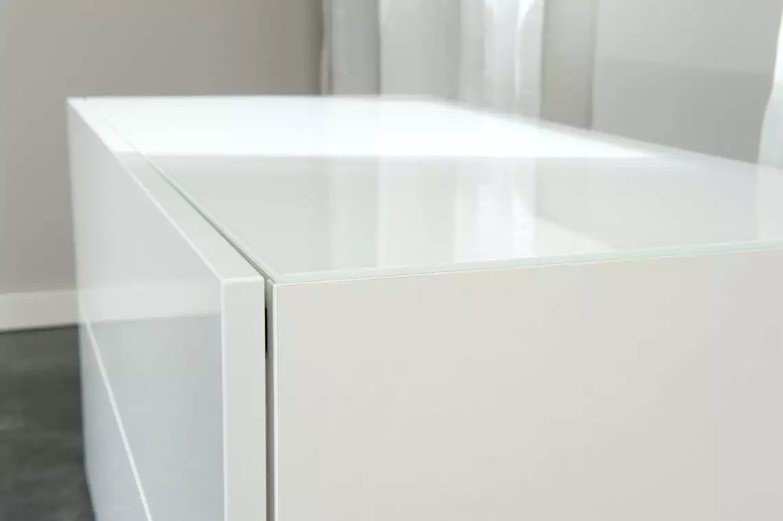Lumo tuo kotiin ylellisyyttä hohtavan valkoisena. Korkeakiiltomaalatut etusarjat ja valkoiset lasikannet viimeistelevät kalusteet upeasti. Kätevä ’push to open’ -mekanismi tekee käytöstä nautittavan helppoa. Mukana tulee seinään kiinnittämistä varten kaatumisenestonauha, jolla etenkin lapsi- tai lemmikkiperheessä voi turvata huonekalun paikallaan pysymisen.