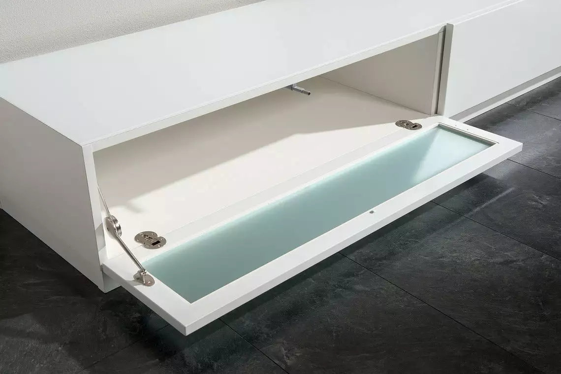 Lumo tuo kotiin ylellisyyttä hohtavan valkoisena. Korkeakiiltomaalatut etusarjat ja valkoiset lasikannet viimeistelevät kalusteet upeasti. Kätevä ’push to open’ -mekanismi tekee käytöstä nautittavan helppoa. Mukana tulee seinään kiinnittämistä varten kaatumisenestonauha, jolla etenkin lapsi- tai lemmikkiperheessä voi turvata huonekalun paikallaan pysymisen.