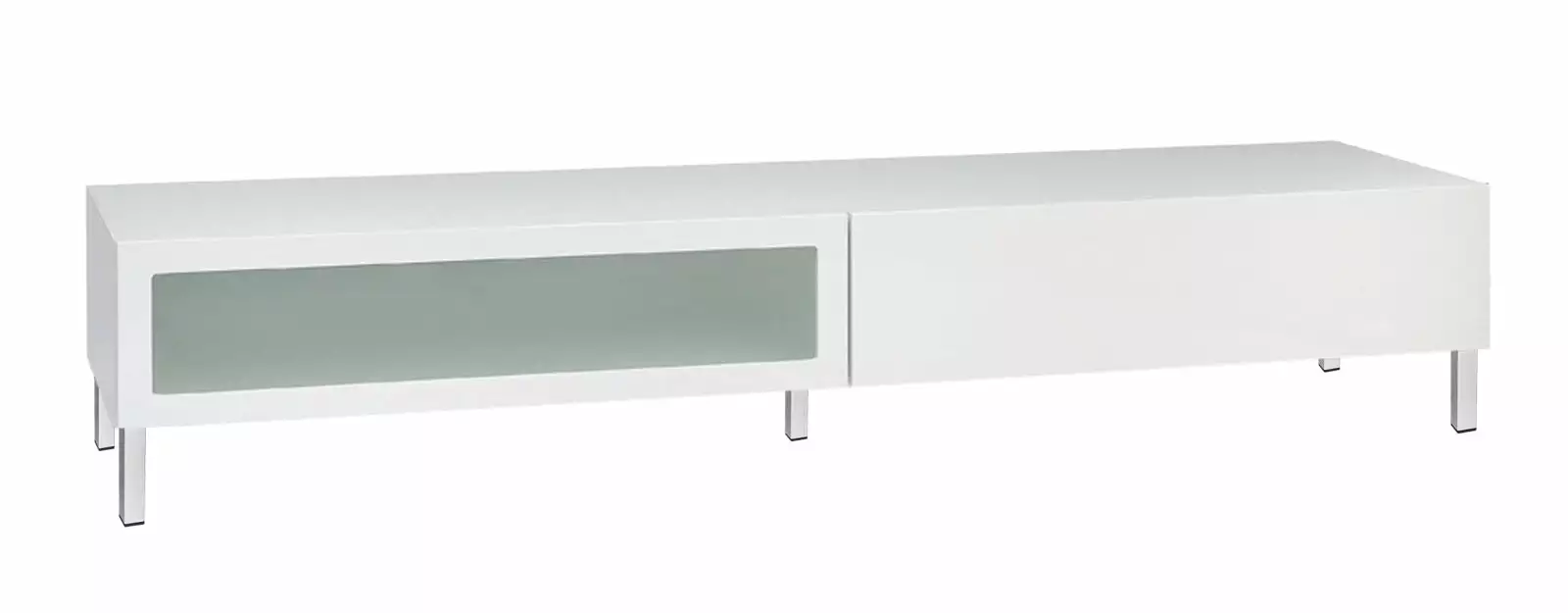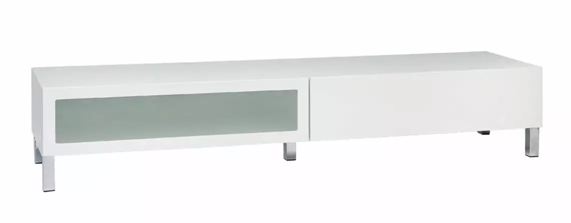 Lumo-sarjan ihastuttavassa leveässä tv-tasossa on oikeanlaiset säilytystilat medialaitteille, läpiviennit johdoille sekä tietenkin sopivasti tilaa tv:lle ja mahdollisille oheislaitteille. Vasemmanpuoleisessa laitetilassa on klaffiovi etsatulla lasilla ja toisella puolella on laatikko. Voit myös valita tv-tason joko 5,5 cm korkealla jalkasokkelilla tai 10 cm korkeilla jaloilla. Malliston eri osista yhdistelemällä saa koottua yksilöllisiä ja toimivia kokonaisuuksia.