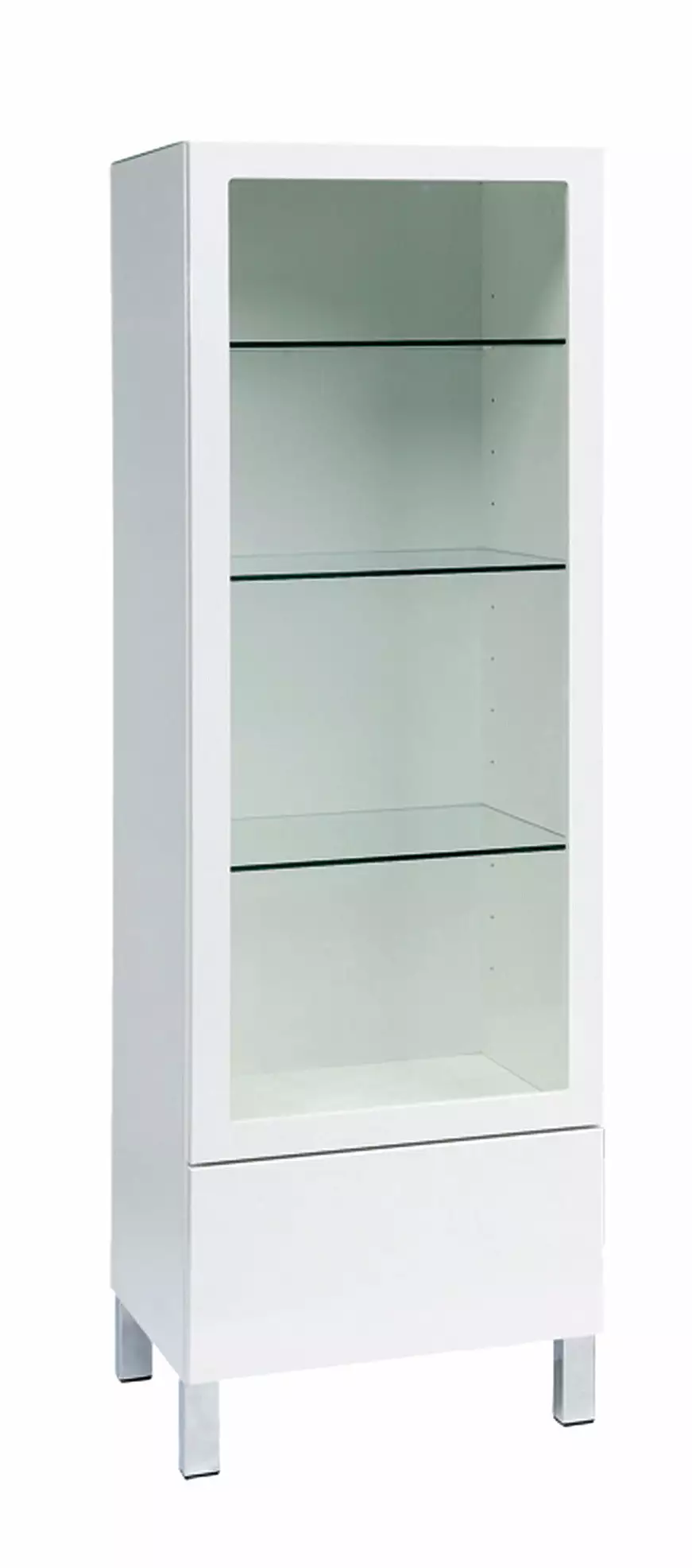 Lumo-vitriini on ihastuttava lasikaappi ja säilytystila koristeellisille esineille ja keräilytavaroille. Vitriinikaapissa on lasioven takana lasihyllyt ja korkean vitriinin alaosassa on lisäksi säilytystilaa laatikon muodossa. Voit valita Lumo-vitriinin joko 5,5 cm korkealla jalkasokkelilla tai 10 cm korkeilla jaloilla. Malliston eri osista yhdistelemällä saa koottua yksilöllisiä ja toimivia kokonaisuuksia.