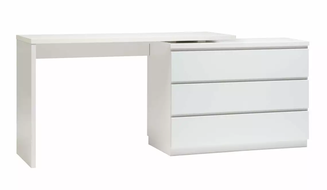 Viiva-kirjoitustasosta saadaan työpöytä asettamalla se ilman kiinnitystä valkoisen 3-laatikkoisen sokkelijalallisen Viiva-lipaston päälle. Kolmen laatikon lipastoja löytyy mallistosta sekä kapea, että leveä. Tarpeen tullen lipaston voi ottaa käyttöön helposti myös ilman kirjoitustasoa. Työtason päälle on saatavana lisävarusteena valkoinen lasikansi.