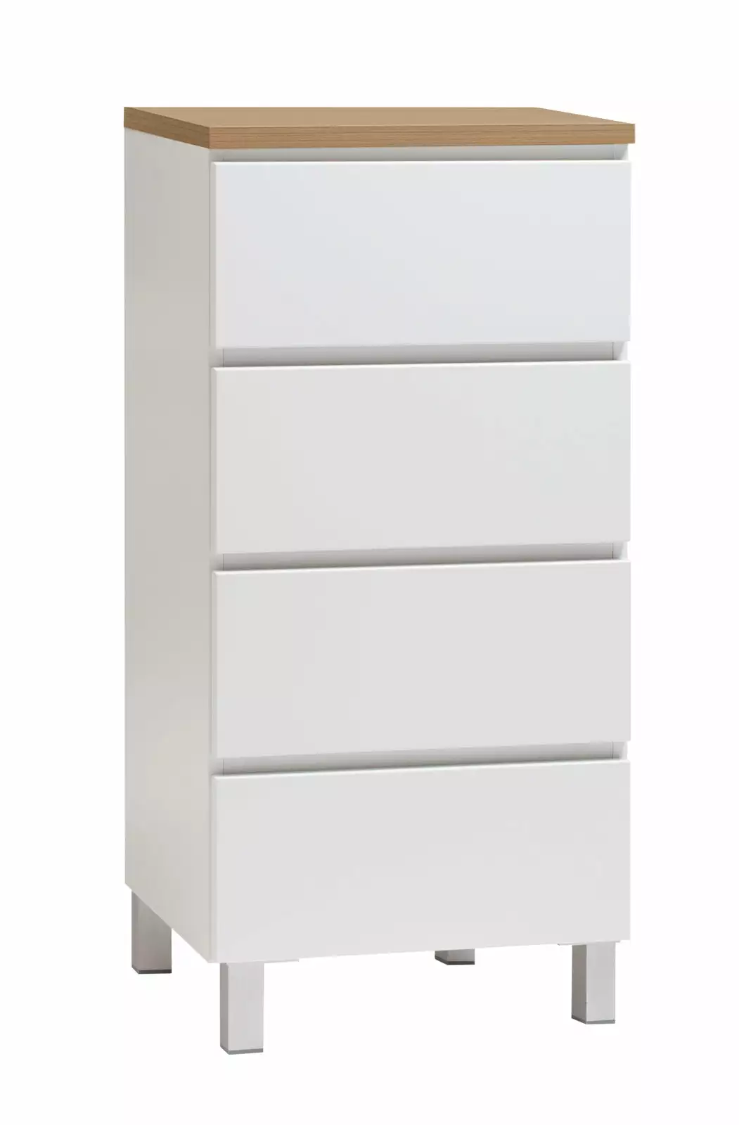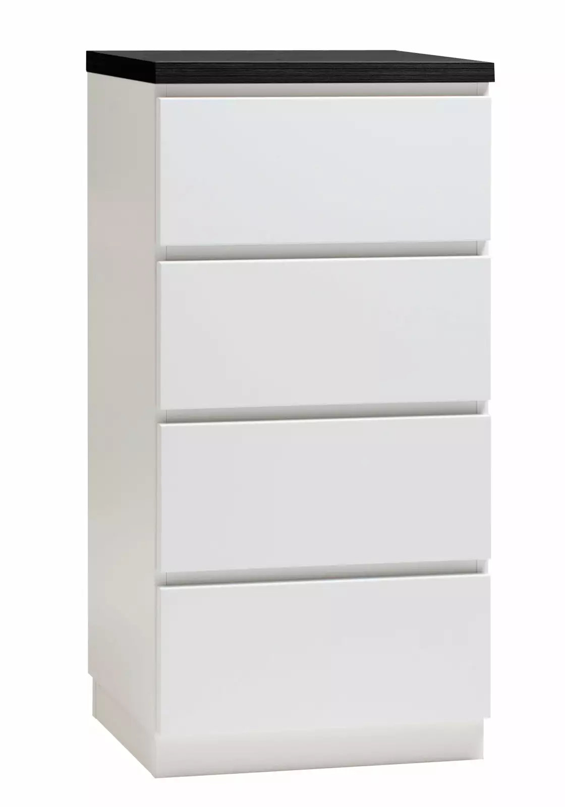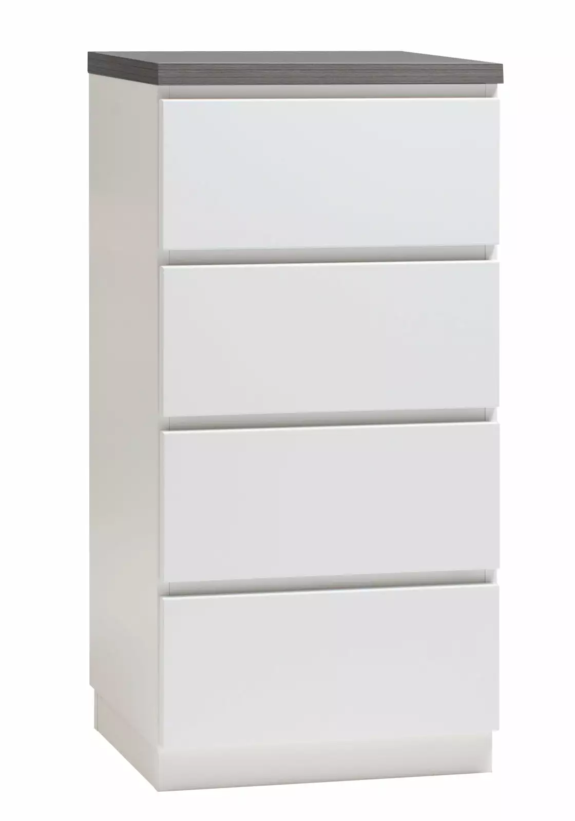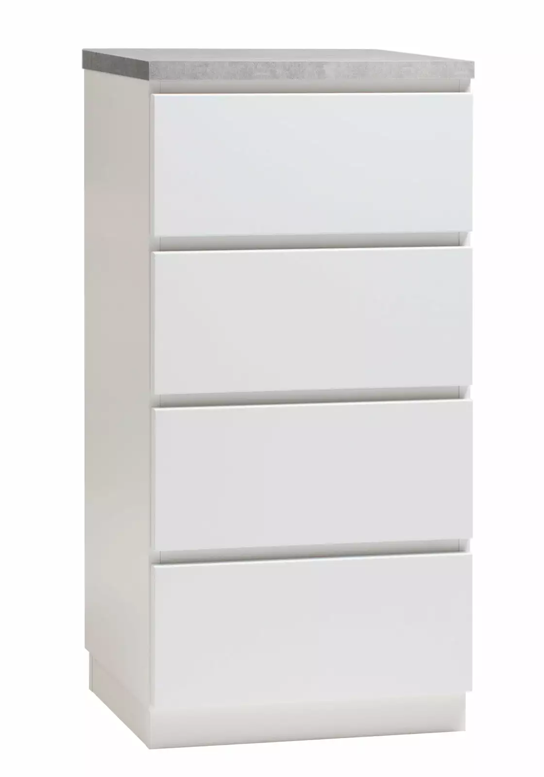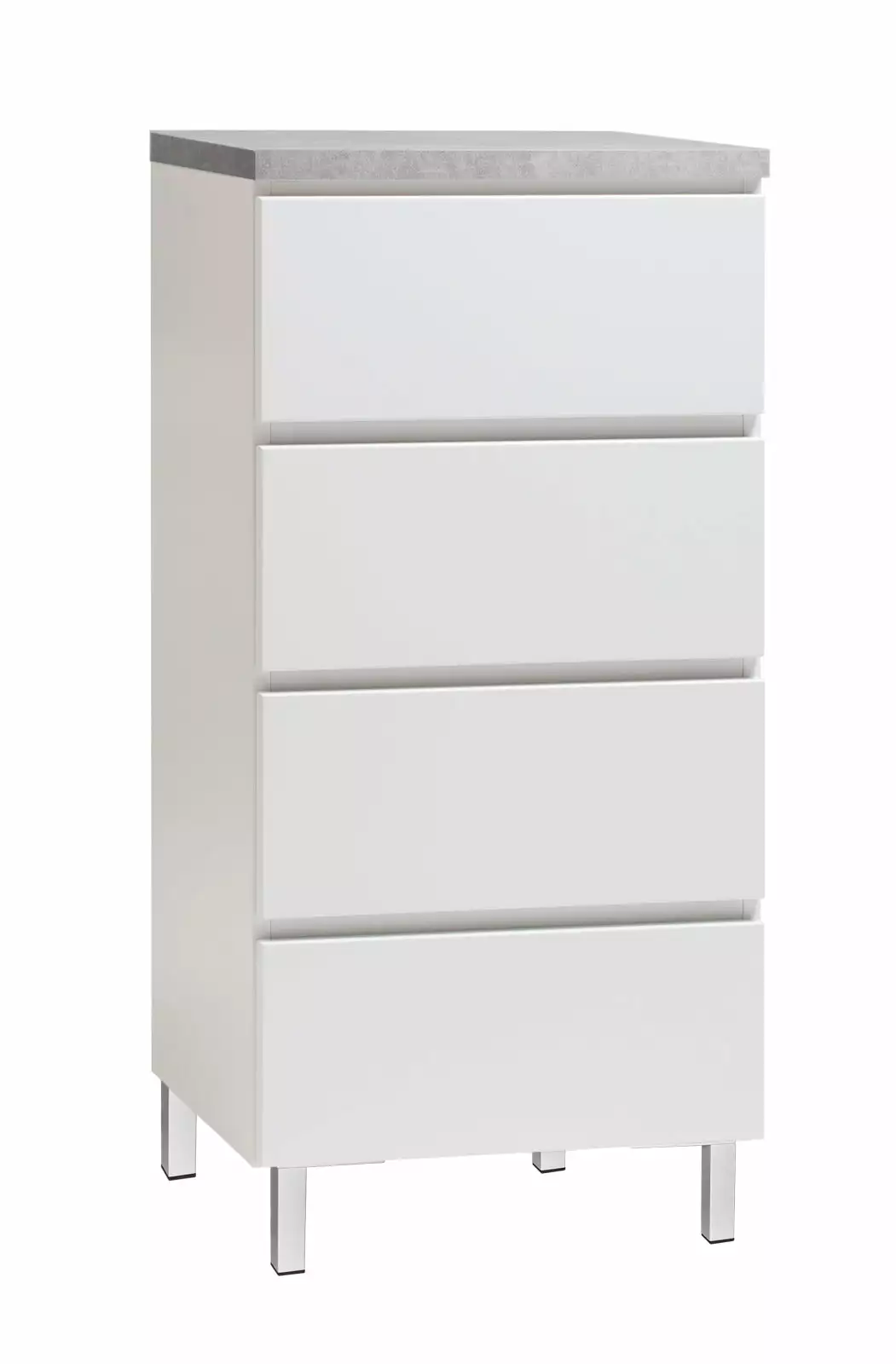 Korkea Viiva-lipasto sopii vaikka yöpöydäksi. Voit valita Viiva-lipaston joko 5,5 cm korkealla jalkasokkelilla, tai 10 cm korkeilla jaloilla. Laatikostoon on saatavana lisävarusteena myös valkoinen karkaistu lasikansi.
