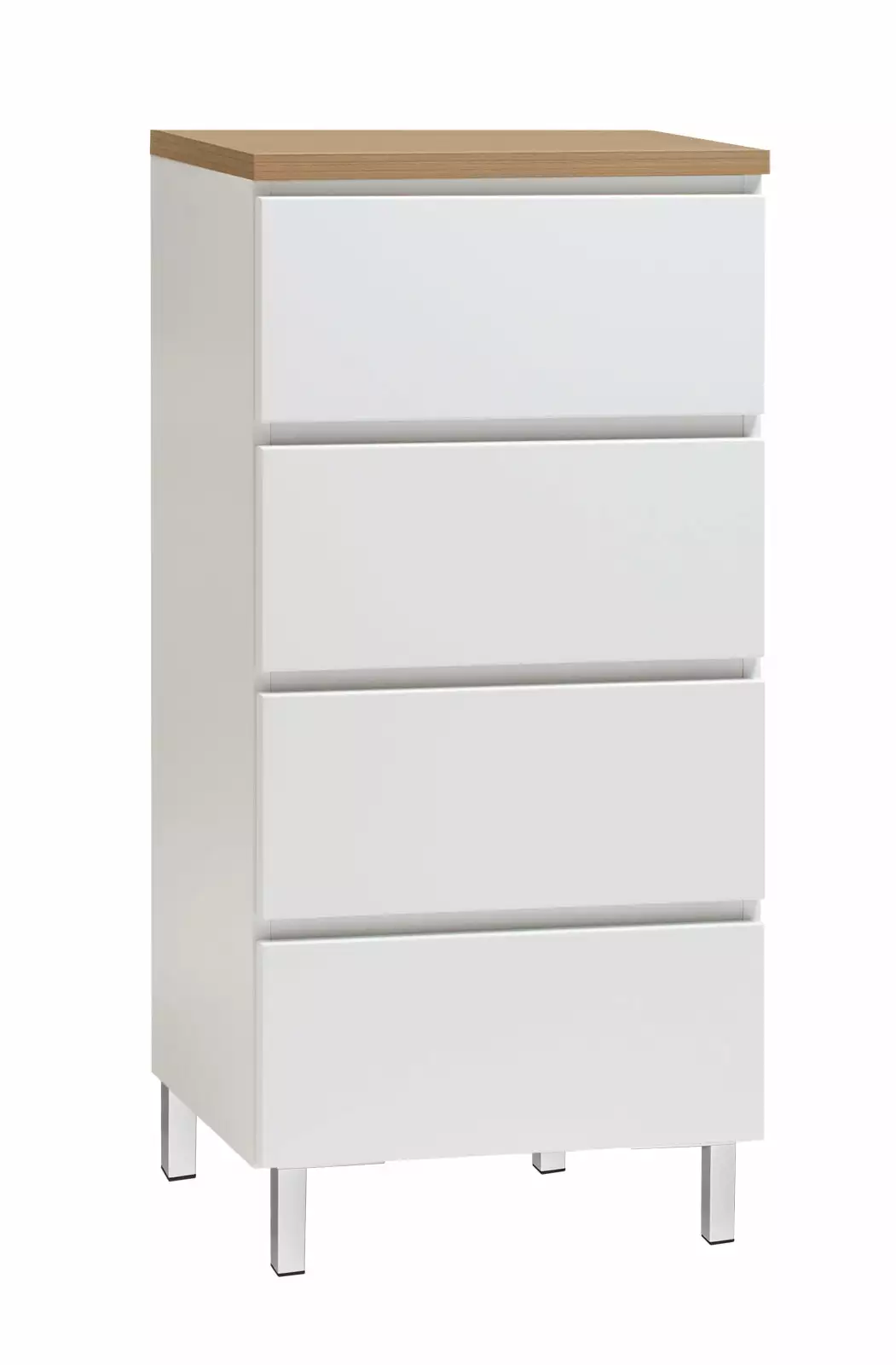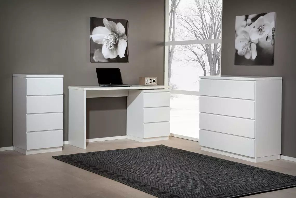 Kotimainen Viiva on upea valkoinen tuoteperhe laadun ja tyylikkyyden ystäville. Modernisti muotoiltujen kalusteiden ulkonäköön voi vaikuttaa valitsemalla kansilevyn kokovalkoisen sijaan useasta eri värisävyvaihtoehdosta. Lisäksi kalusteen jalkamallin voi valita erilaisista vaihtoehdoista.