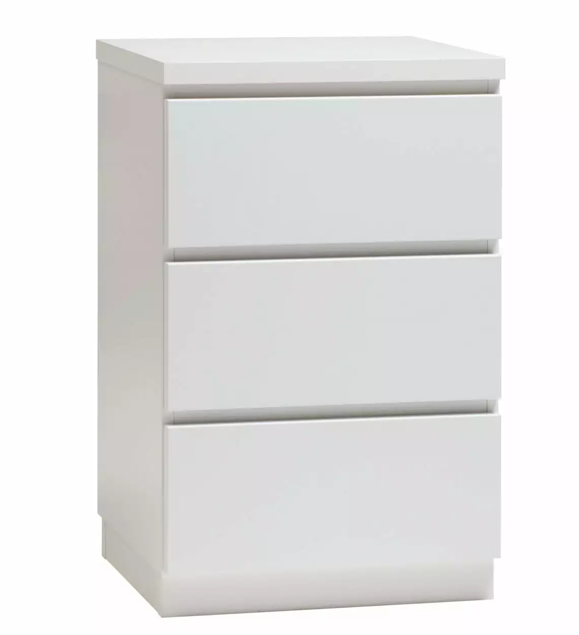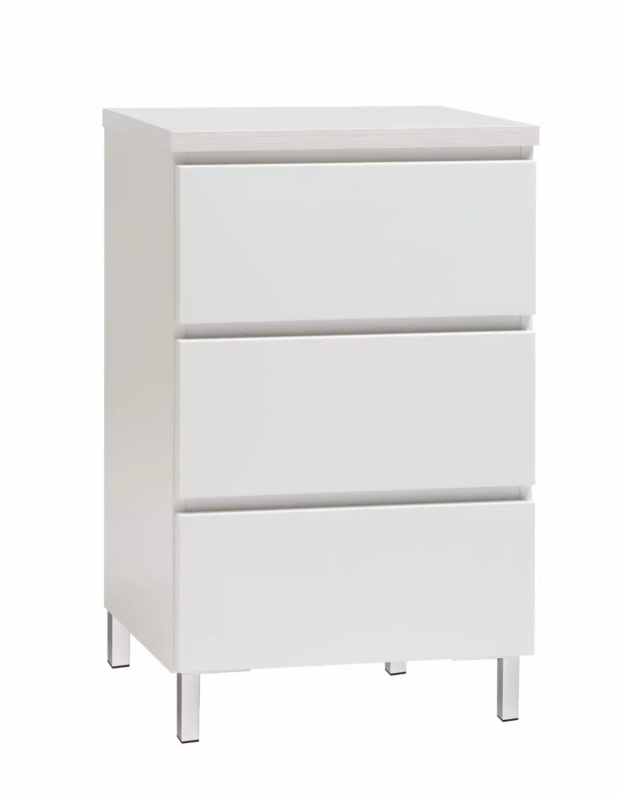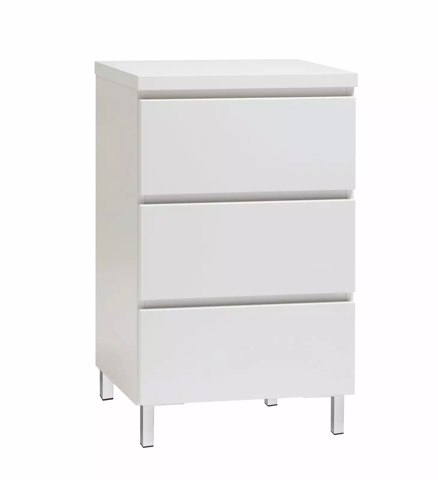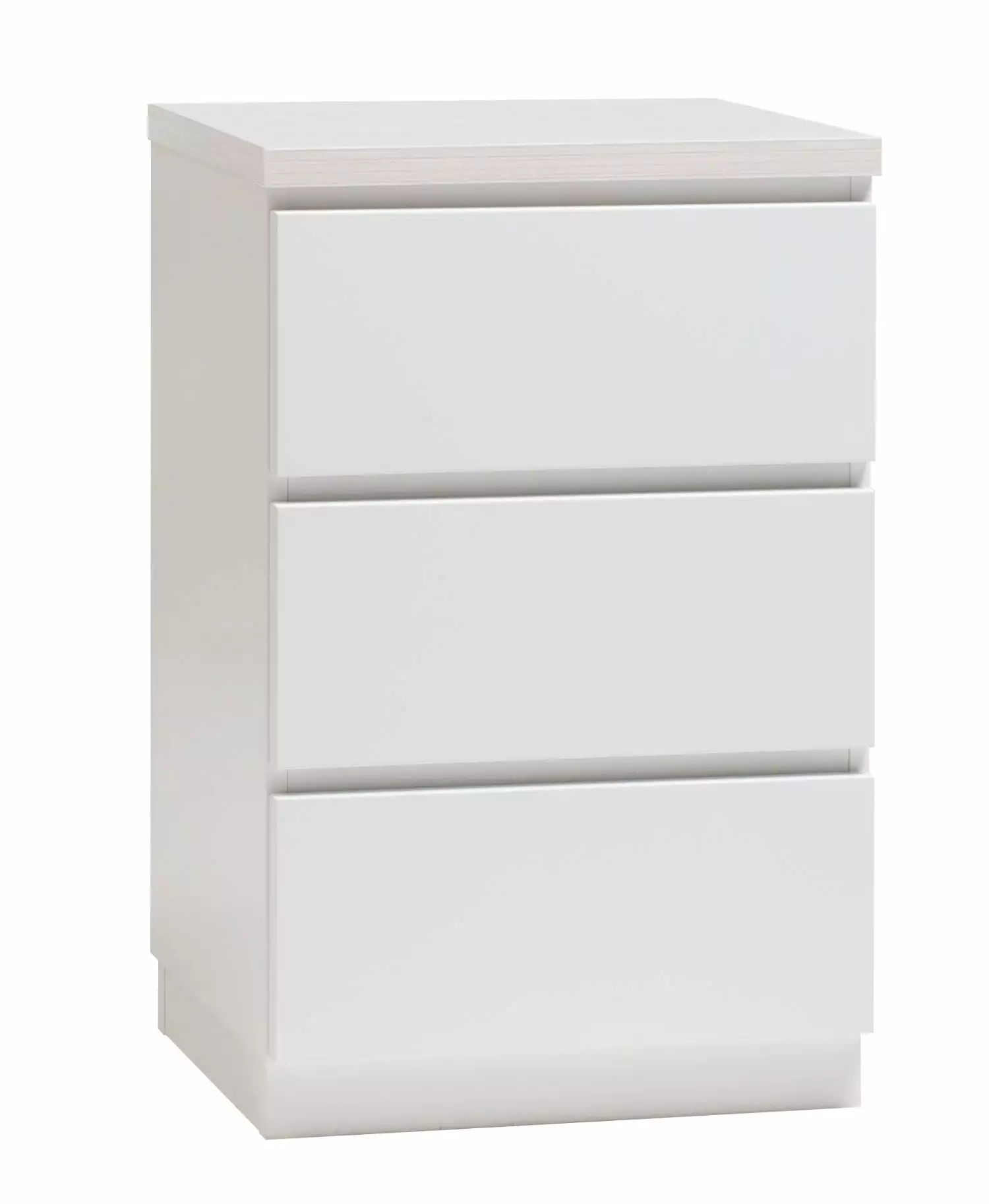 Matala Viiva-lipasto sopii erinomaisesti myös yöpöydäksi. Voit valita Viiva-lipaston joko 5,5 cm korkealla jalkasokkelilla, tai 10 cm korkeilla jaloilla. Laatikostoon on saatavana lisävarusteena myös valkoinen karkaistu lasikansi.