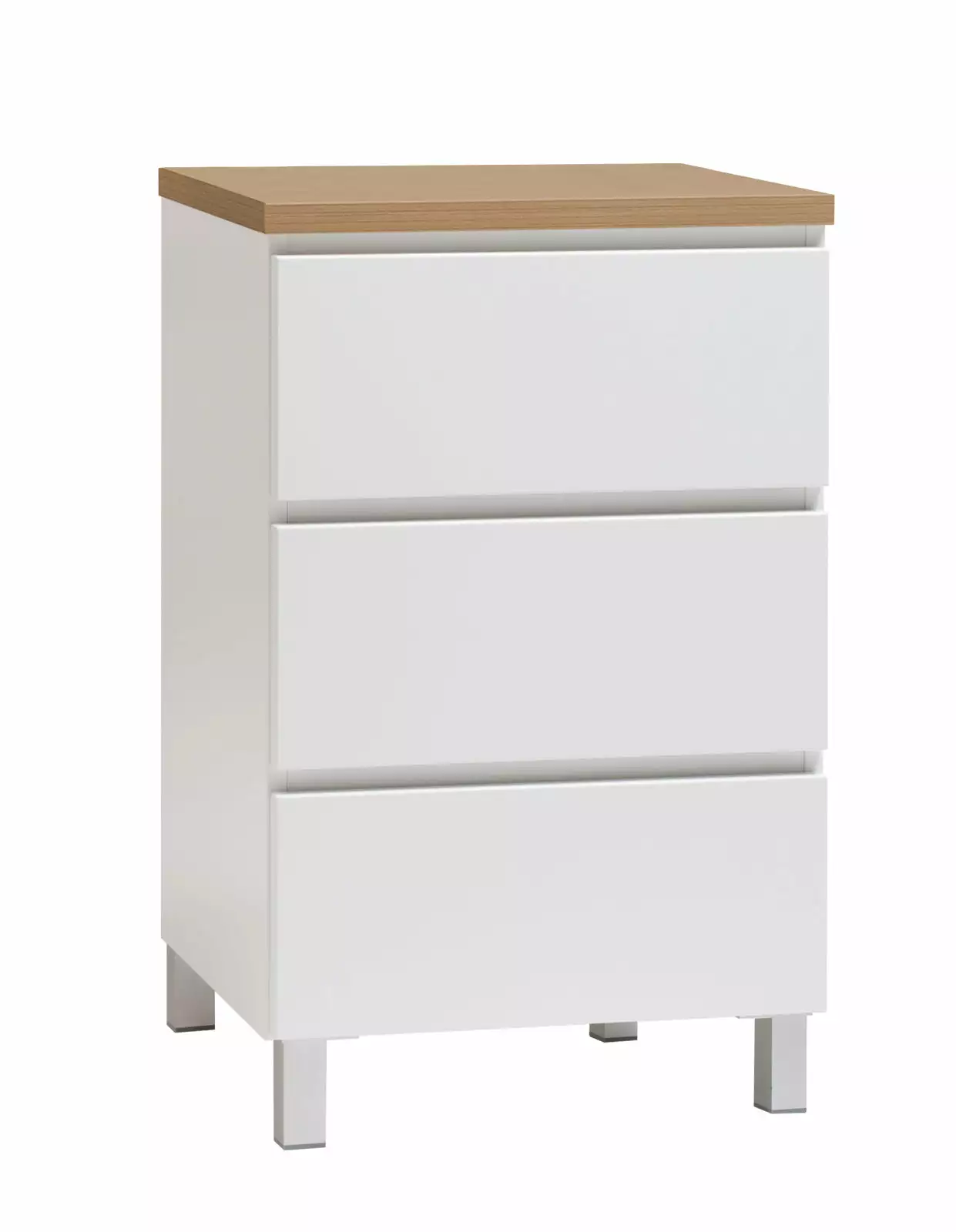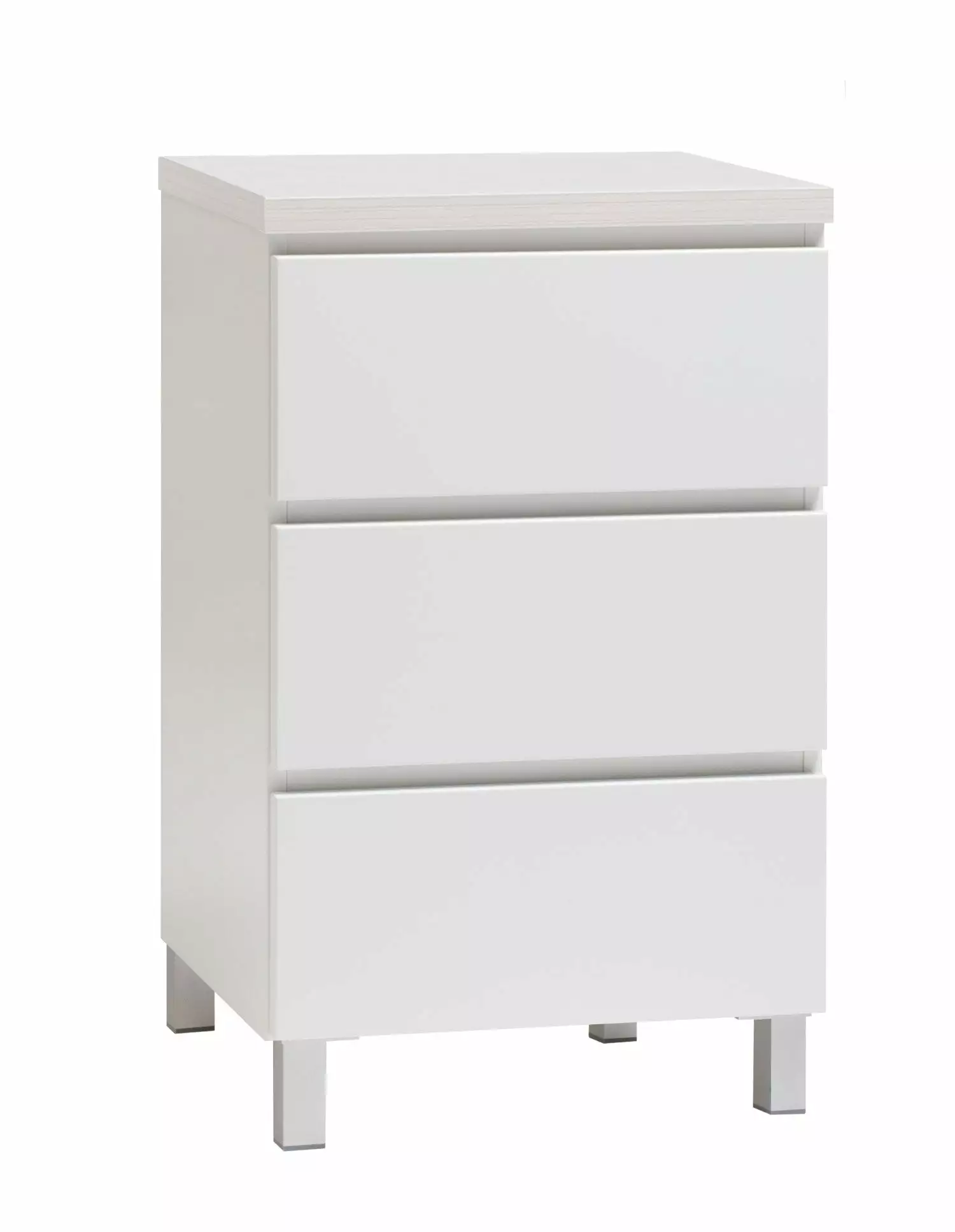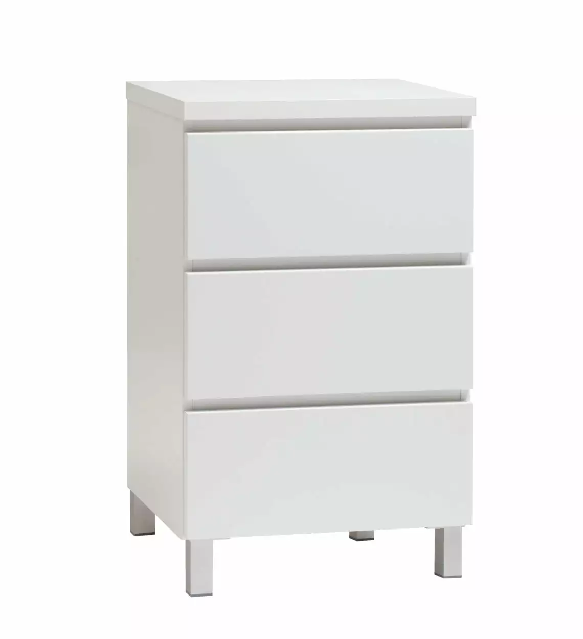 Matala Viiva-lipasto sopii erinomaisesti myös yöpöydäksi. Voit valita Viiva-lipaston joko 5,5 cm korkealla jalkasokkelilla, tai 10 cm korkeilla jaloilla. Laatikostoon on saatavana lisävarusteena myös valkoinen karkaistu lasikansi.