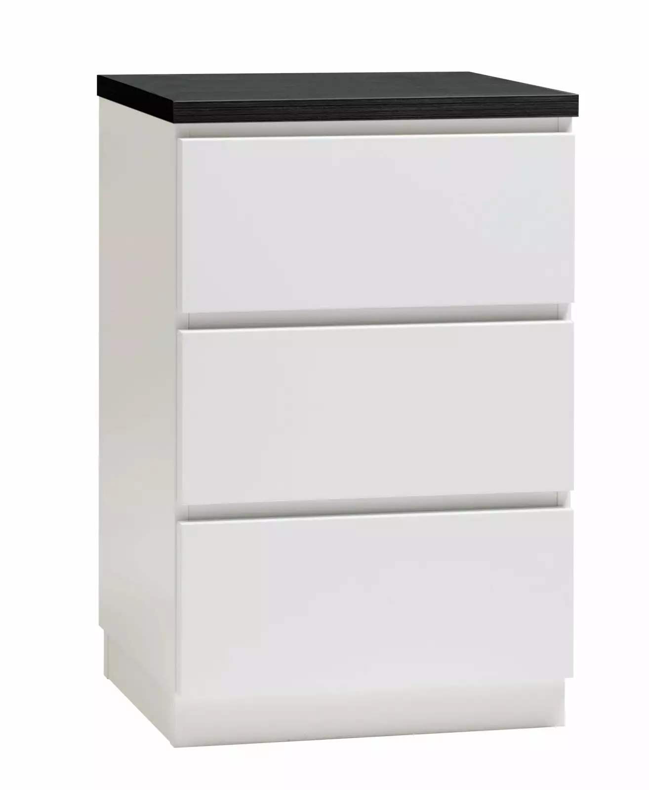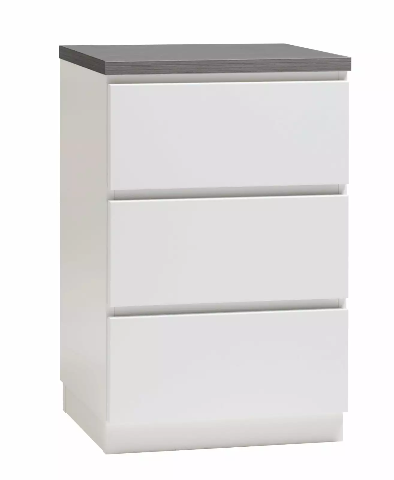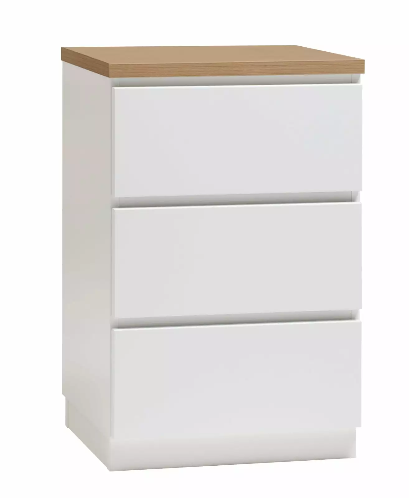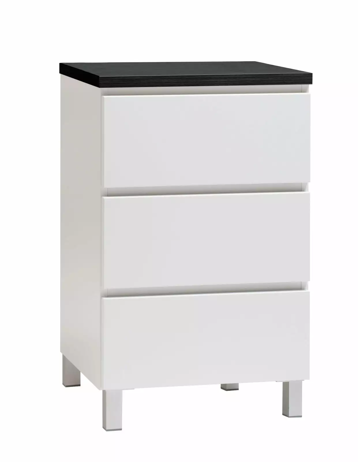 Matala Viiva-lipasto sopii erinomaisesti myös yöpöydäksi. Voit valita Viiva-lipaston joko 5,5 cm korkealla jalkasokkelilla, tai 10 cm korkeilla jaloilla. Laatikostoon on saatavana lisävarusteena myös valkoinen karkaistu lasikansi.