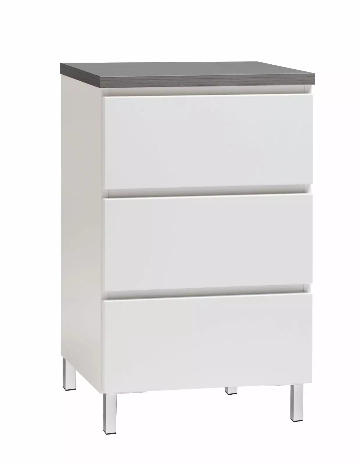 Kotimainen Viiva on upea valkoinen tuoteperhe laadun ja tyylikkyyden ystäville. Modernisti muotoiltujen kalusteiden ulkonäköön voi vaikuttaa valitsemalla kansilevyn kokovalkoisen sijaan useasta eri värisävyvaihtoehdosta. Lisäksi kalusteen jalkamallin voi valita erilaisista vaihtoehdoista.