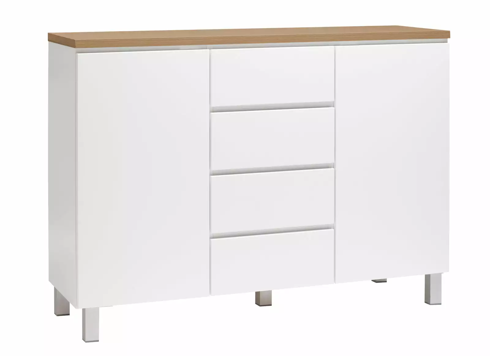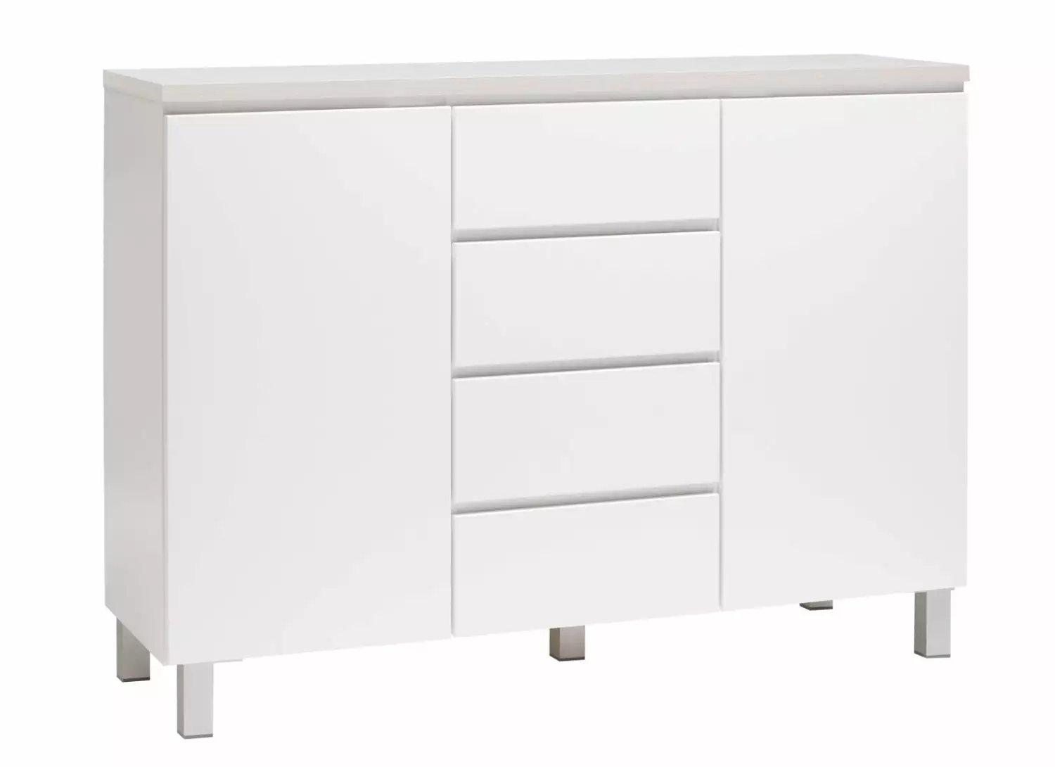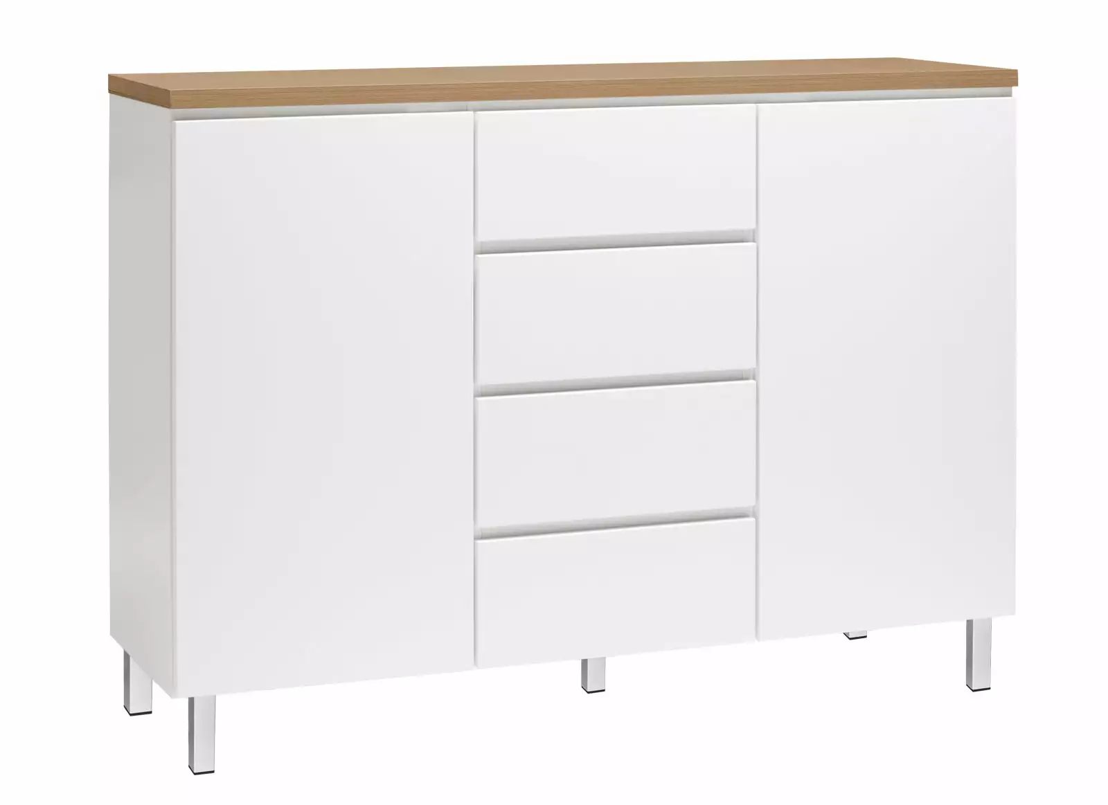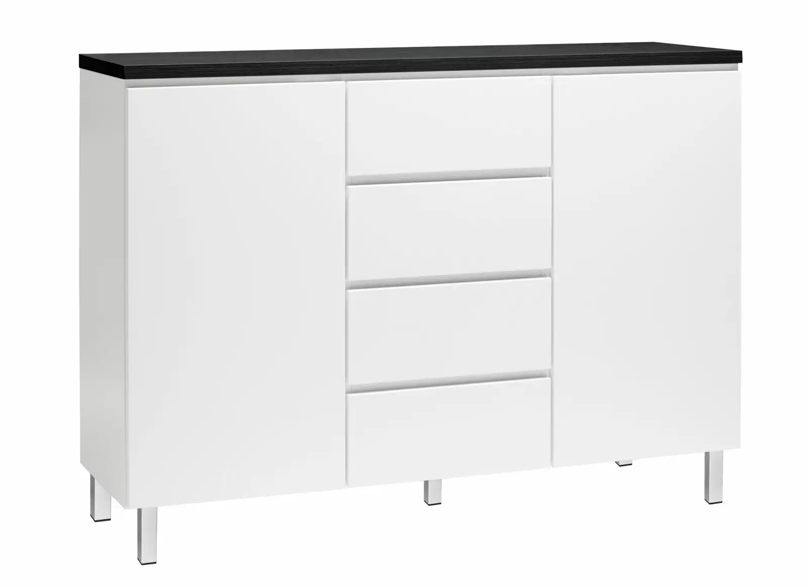 Viiva-sarjan senkki tuo näppärää säilytys- ja laskutilaa kodin eri tiloihin. Ovikaapeissa on tilaa isommille tavaroille, ja keskiosan laatikoissa pidät pientavarat järjestyksessä ja siististi poissa silmistä. Voit valita senkin joko 5,5 cm korkealla jalkasokkelilla tai 10 cm korkeilla jaloilla. Senkkiin on saatavana lisävarusteena myös valkoinen karkaistu lasikansi.