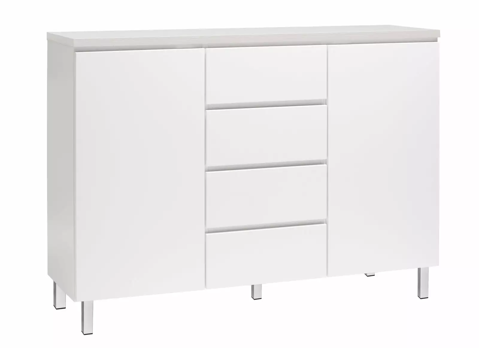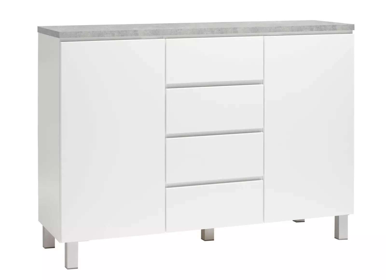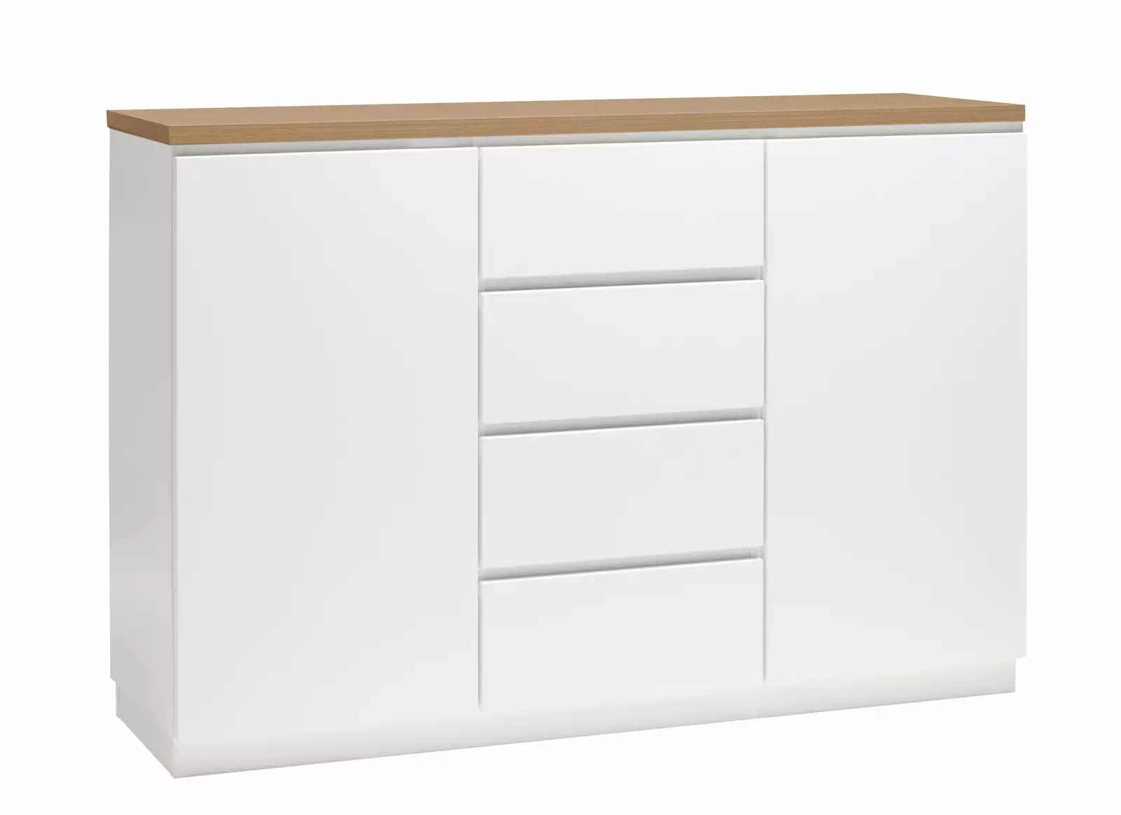 Viiva-sarjan senkki tuo näppärää säilytys- ja laskutilaa kodin eri tiloihin. Ovikaapeissa on tilaa isommille tavaroille, ja keskiosan laatikoissa pidät pientavarat järjestyksessä ja siististi poissa silmistä. Voit valita senkin joko 5,5 cm korkealla jalkasokkelilla tai 10 cm korkeilla jaloilla. Senkkiin on saatavana lisävarusteena myös valkoinen karkaistu lasikansi.