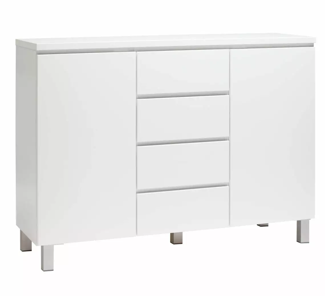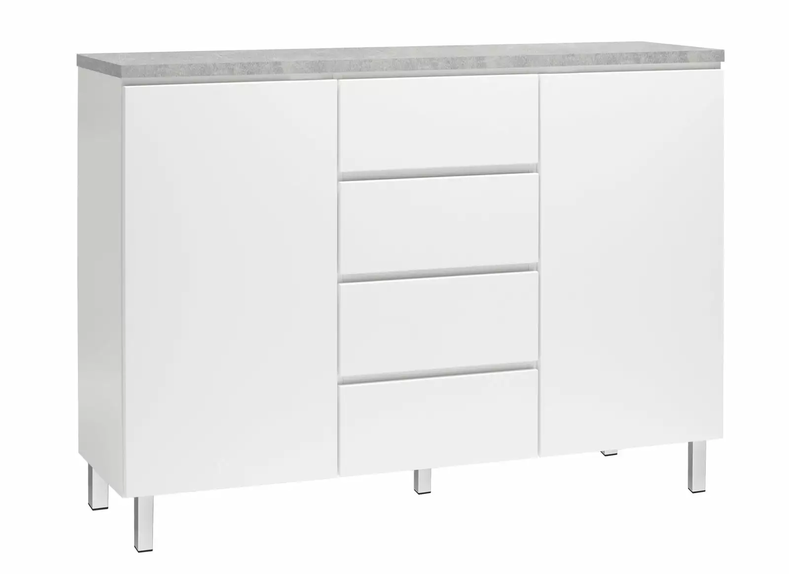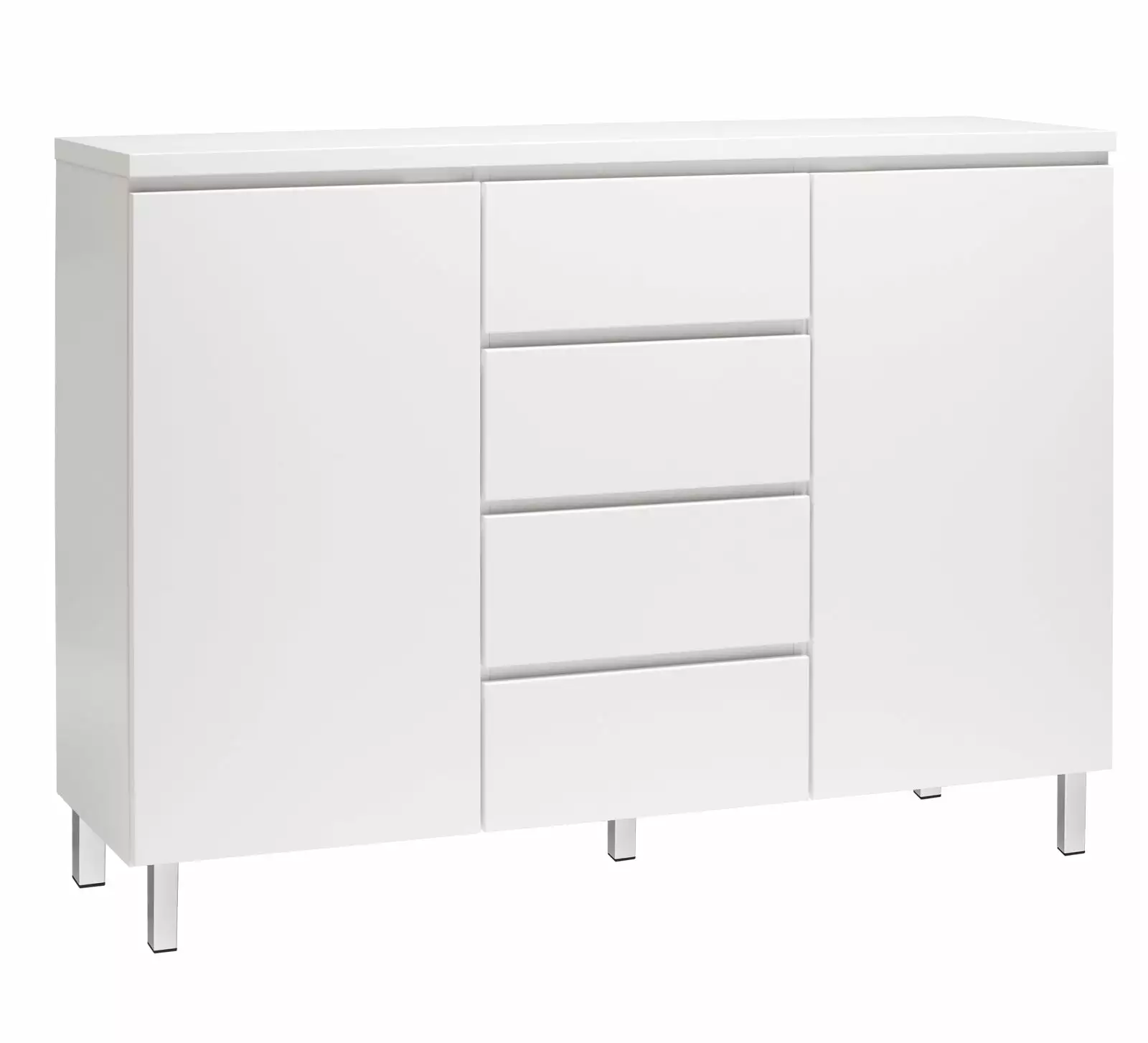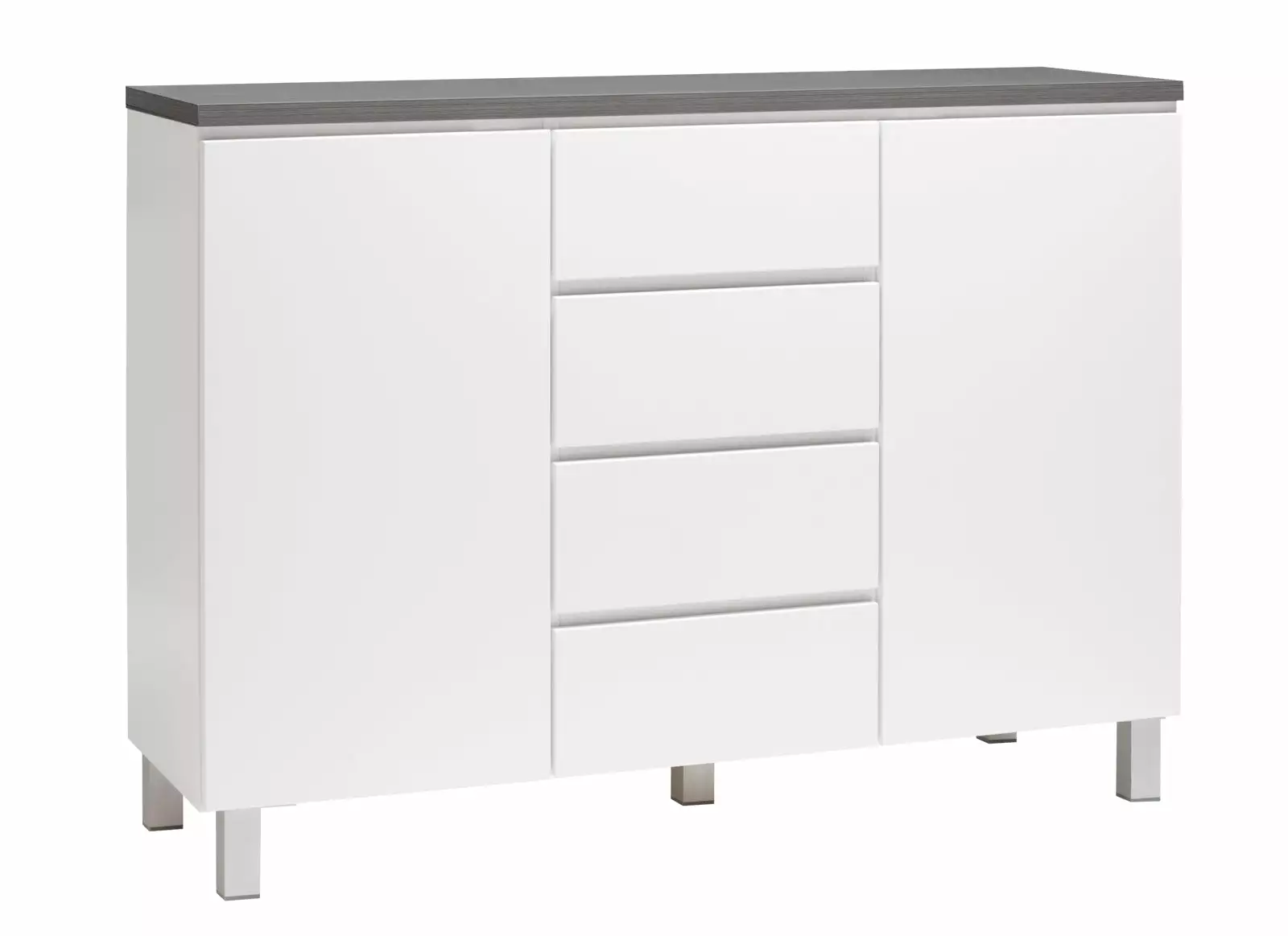 Viiva-sarjan senkki tuo näppärää säilytys- ja laskutilaa kodin eri tiloihin. Ovikaapeissa on tilaa isommille tavaroille, ja keskiosan laatikoissa pidät pientavarat järjestyksessä ja siististi poissa silmistä. Voit valita senkin joko 5,5 cm korkealla jalkasokkelilla tai 10 cm korkeilla jaloilla. Senkkiin on saatavana lisävarusteena myös valkoinen karkaistu lasikansi.
