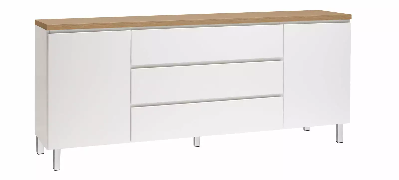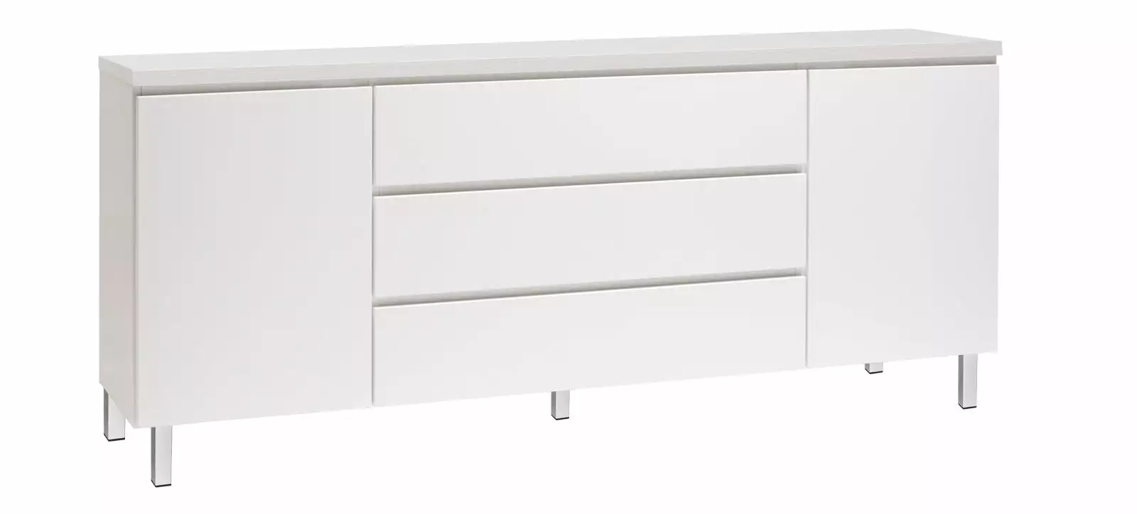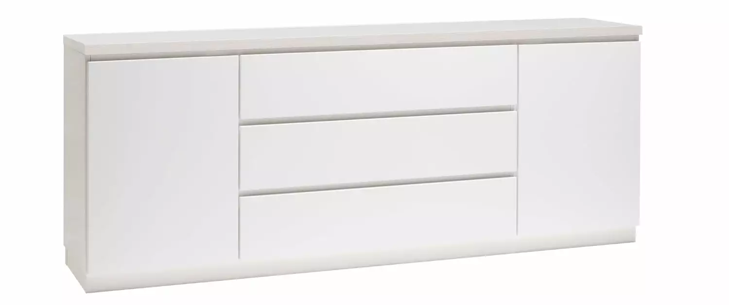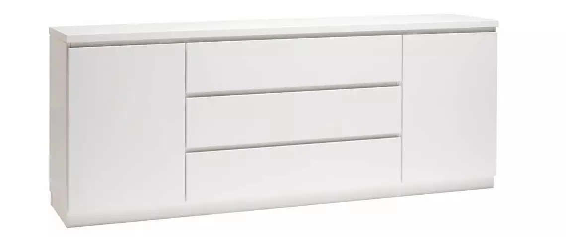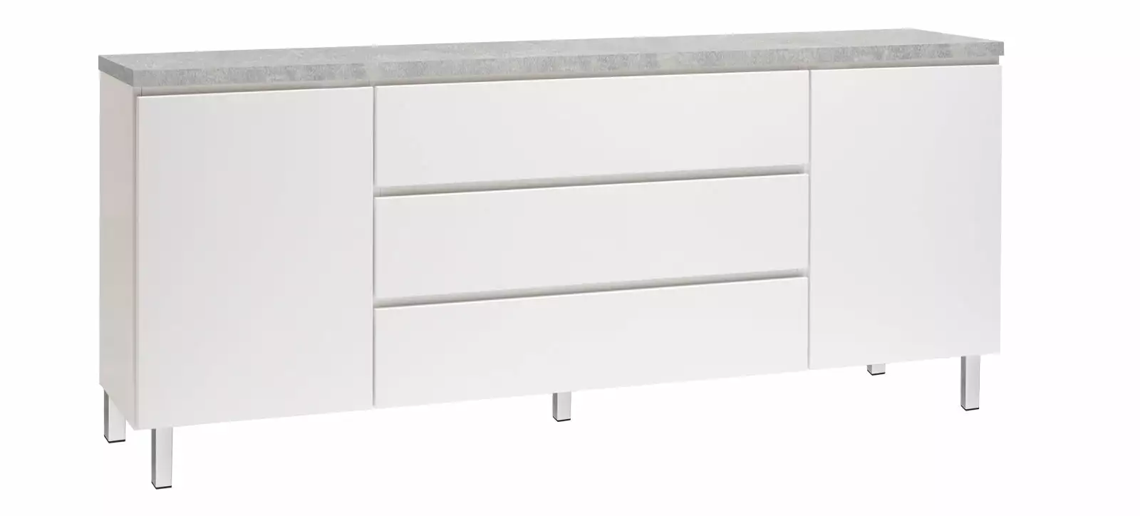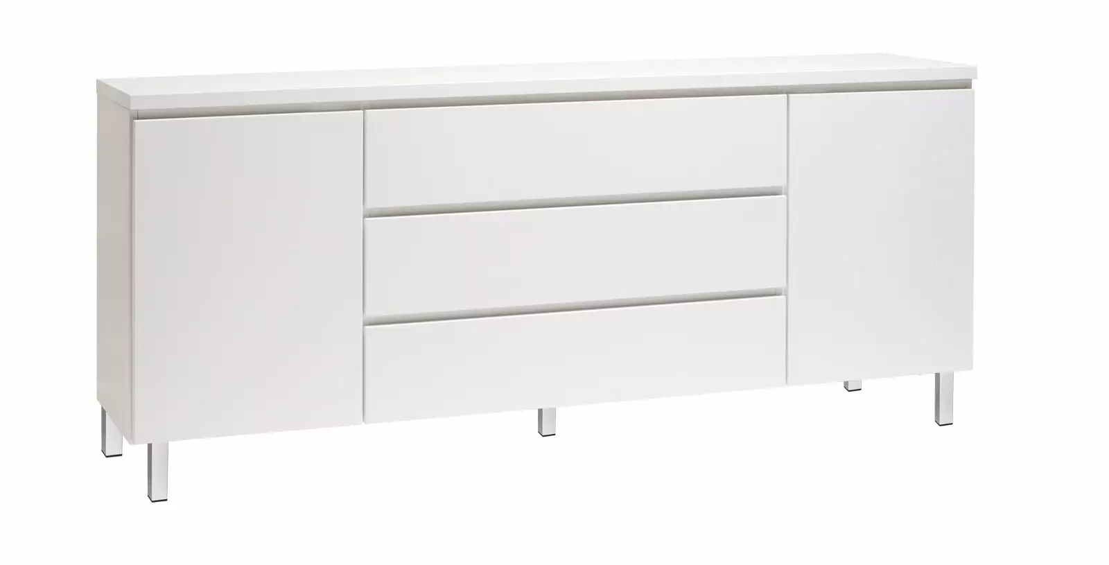 Viiva-sarjan senkki tuo näppärää säilytys- ja laskutilaa kodin eri tiloihin. Ovikaapeissa on tilaa isommille tavaroille, ja keskiosan leveissä laatikoissa pidät pientavarat järjestyksessä ja siististi poissa silmistä. Voit valita senkin joko 5,5 cm korkealla jalkasokkelilla tai 10 cm korkeilla jaloilla. Senkkiin on saatavana lisävarusteena myös valkoinen karkaistu lasikansi.