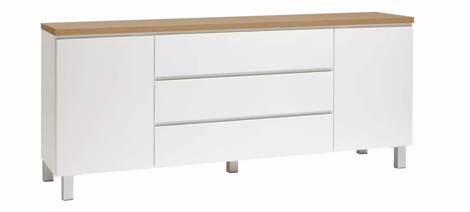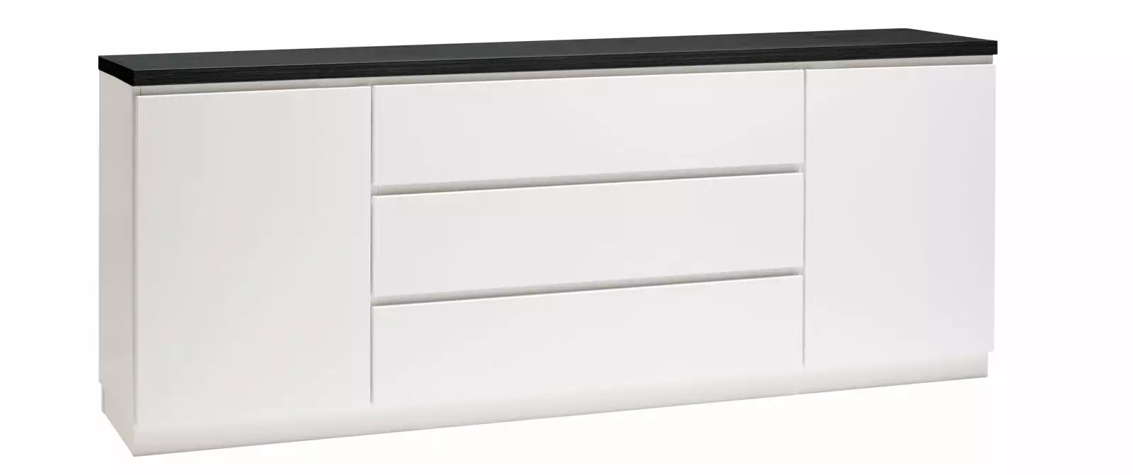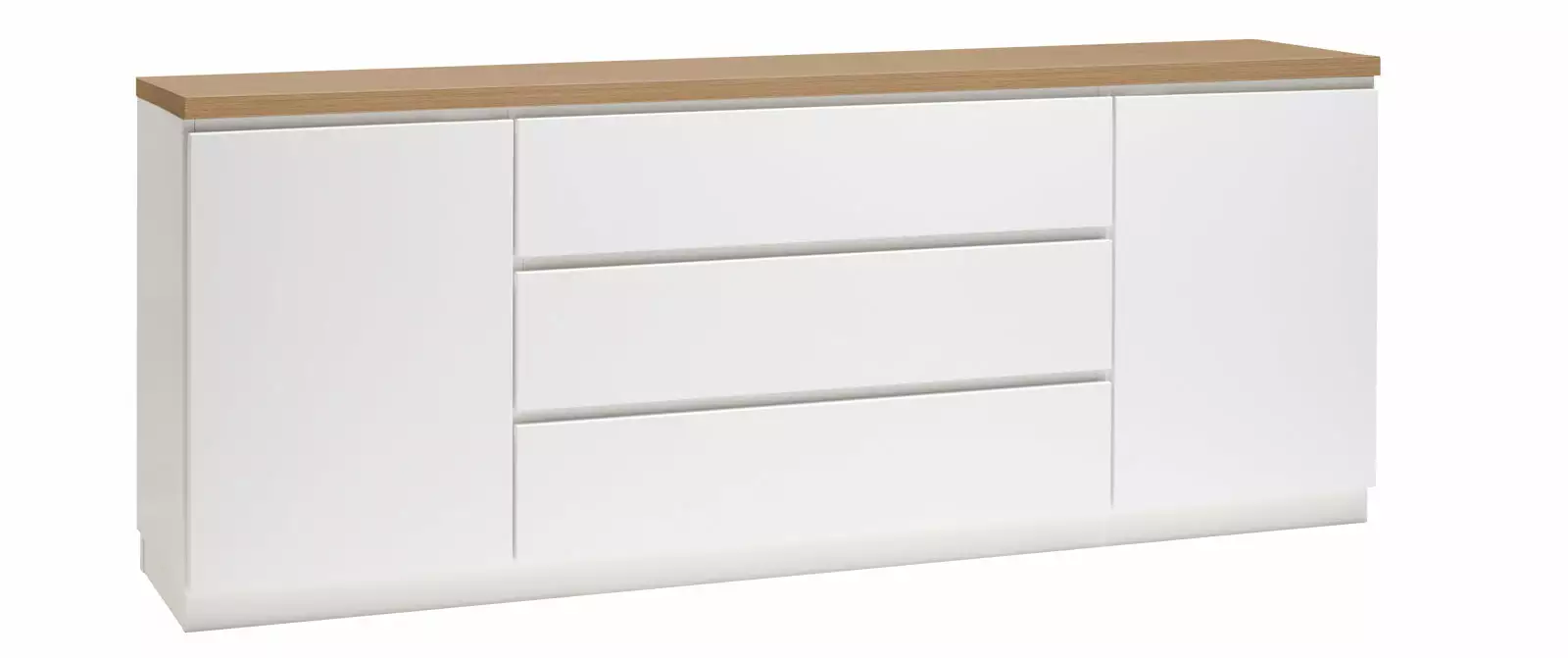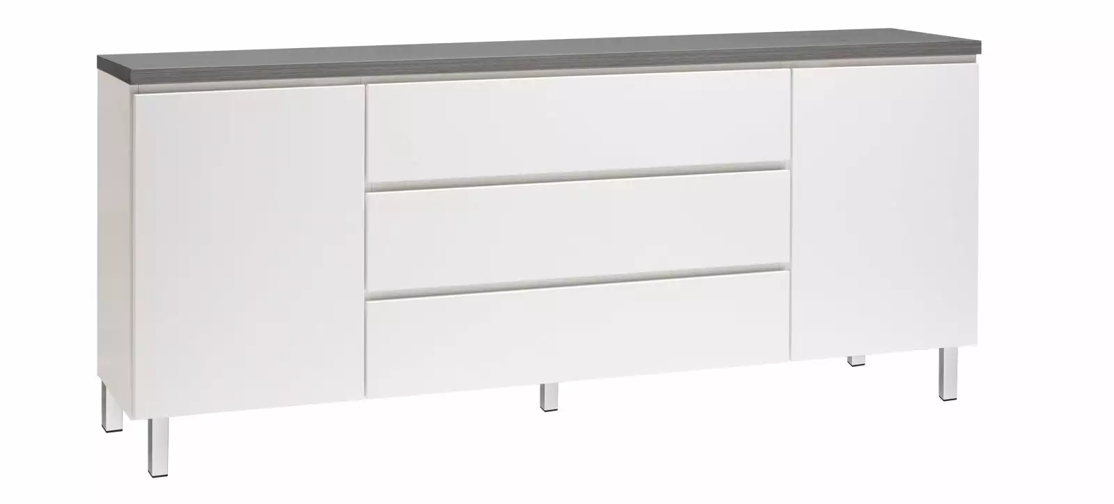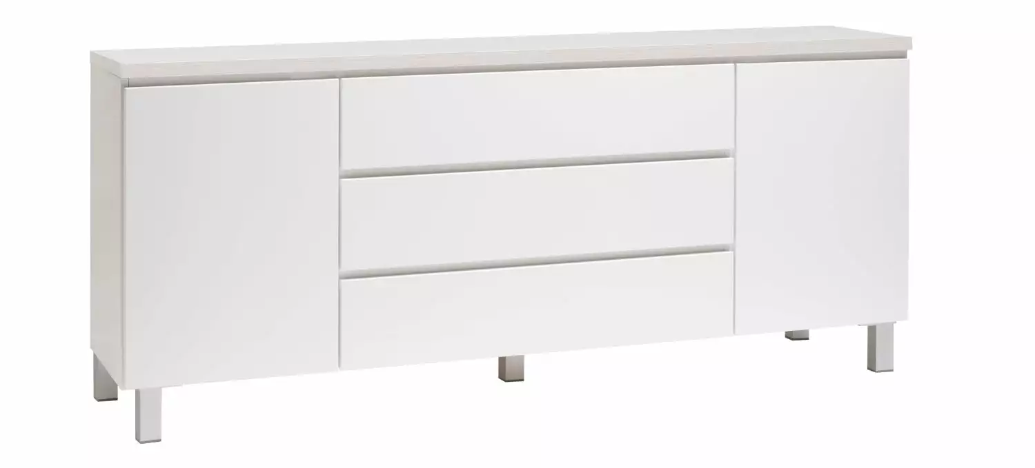 Viiva-sarjan senkki tuo näppärää säilytys- ja laskutilaa kodin eri tiloihin. Ovikaapeissa on tilaa isommille tavaroille, ja keskiosan leveissä laatikoissa pidät pientavarat järjestyksessä ja siististi poissa silmistä. Voit valita senkin joko 5,5 cm korkealla jalkasokkelilla tai 10 cm korkeilla jaloilla. Senkkiin on saatavana lisävarusteena myös valkoinen karkaistu lasikansi.