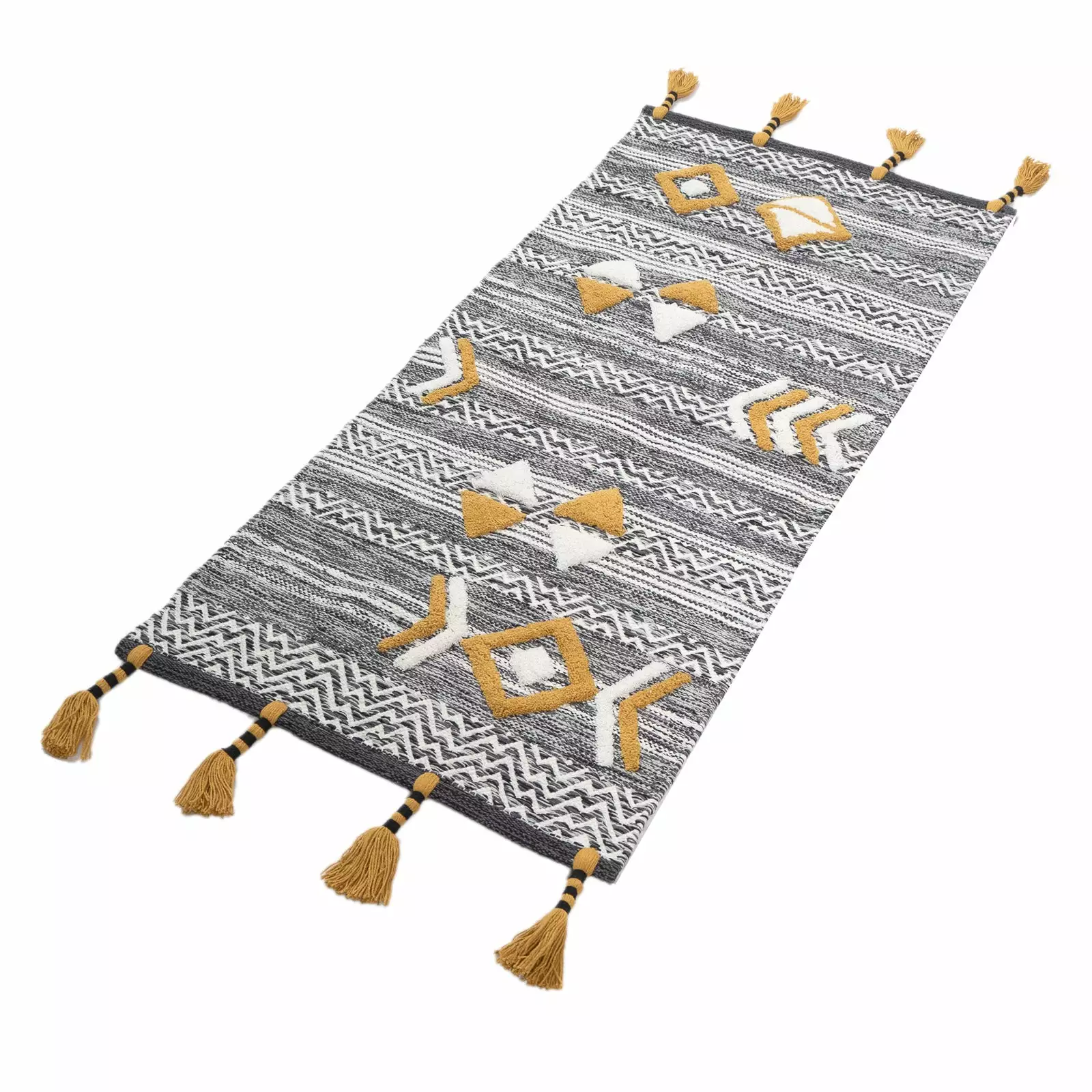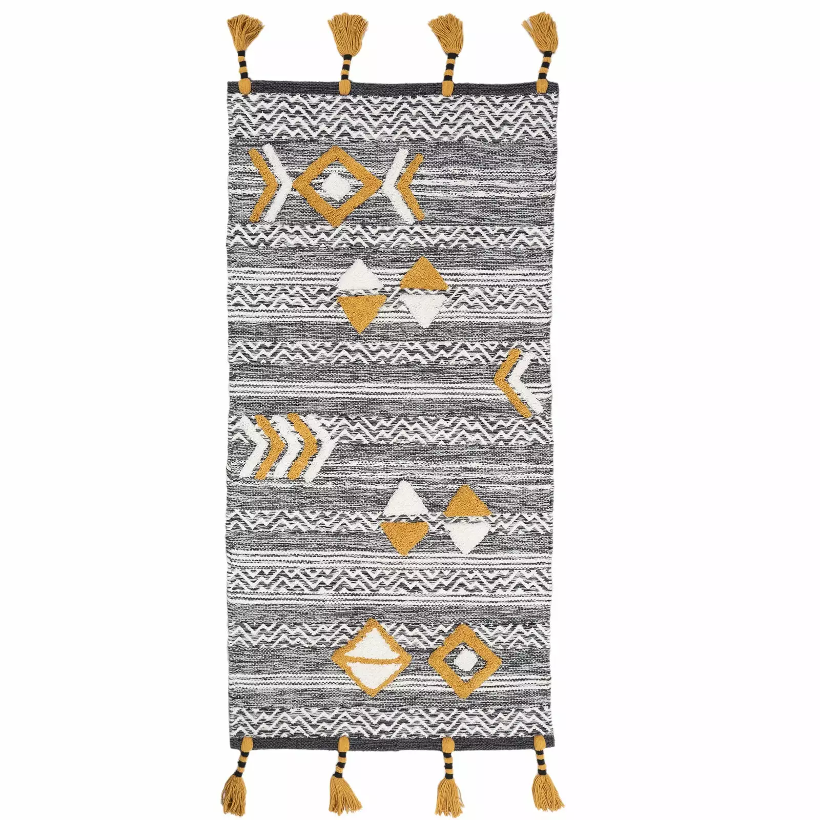 Mattokympin matto- ja piensisustustuotteistamme löydät myös ihanat Tico-tuotteet. Valkoisen, harmaan ja okran sävyiset graafiset tuftatut yksityiskohfat ovat tuomassa modernia ilmettä ihastuttavaan Tico-puuvillamattoon. Matossa on myös näyttävät okran sävyiset tupsut molemmissa päissä. Tico tuo trendikkäästi väriä elämään!