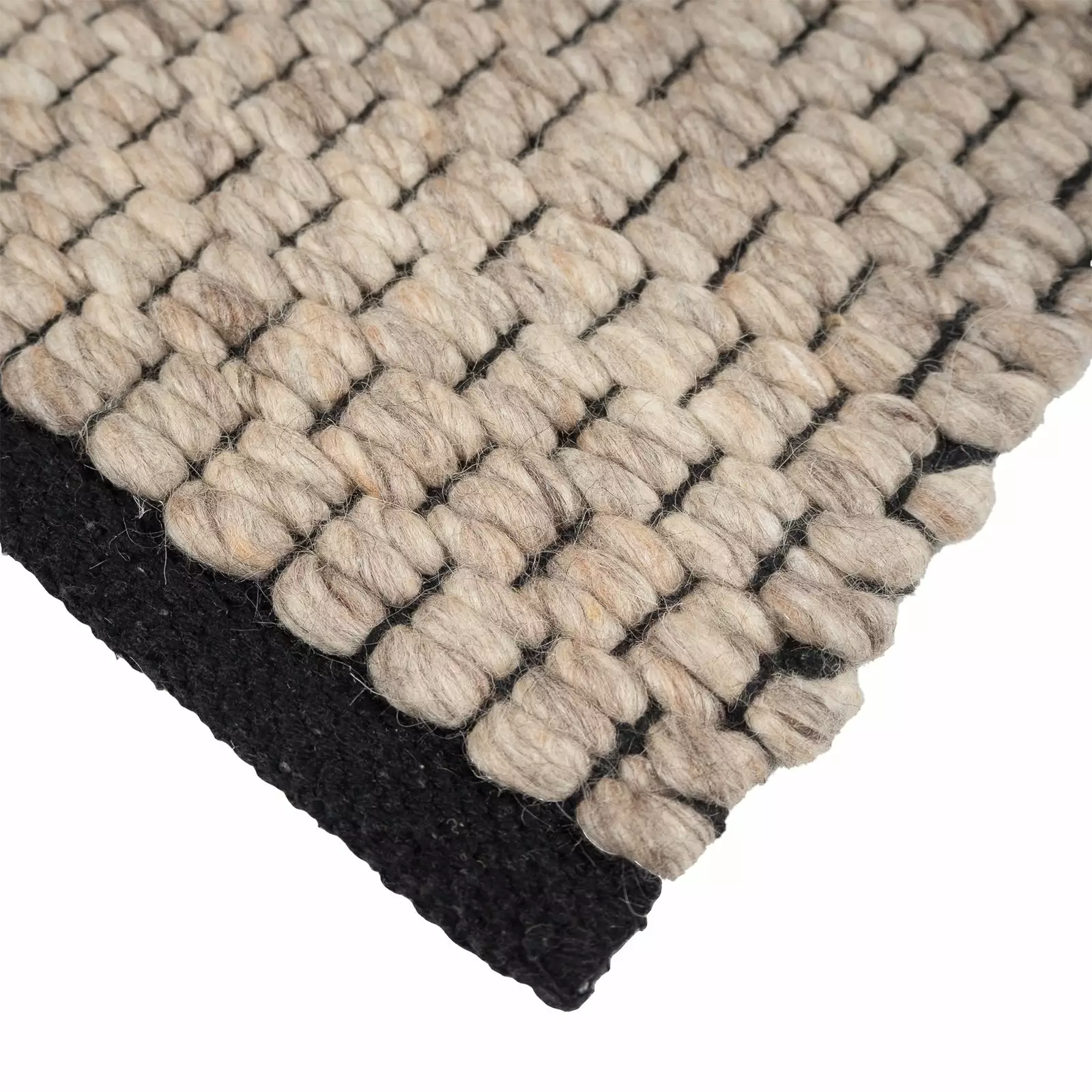 Mattokympin Tuisku on pehmeä villamatto luonnonläheisissä sävyissä. Käsinkudottu matto sopii upeasti sisustukseen ja kodin paraatipaikalle – mustat päätykantit ja loimilanka tuovat matolle ryhdikästä ilmettä. Tuisku-matto on yksipuoleisesti pidettävä.