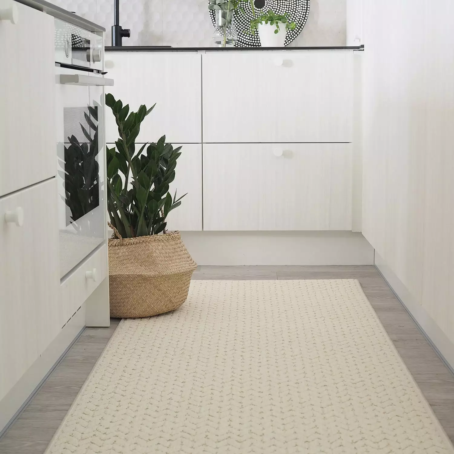Valencia-matto on sileäksi kudottu ja pehmeä lettikuvio antaa sille kolmiulotteista ilmettä. Ajaton kuosi on helppo yhdistää niin perinteiseen, kuin moderniin sisustukseen. Neutraalit valkoisen ja harmaan sävyt rauhoittavat ja tekevät avaran vaikutelman kotiisi.