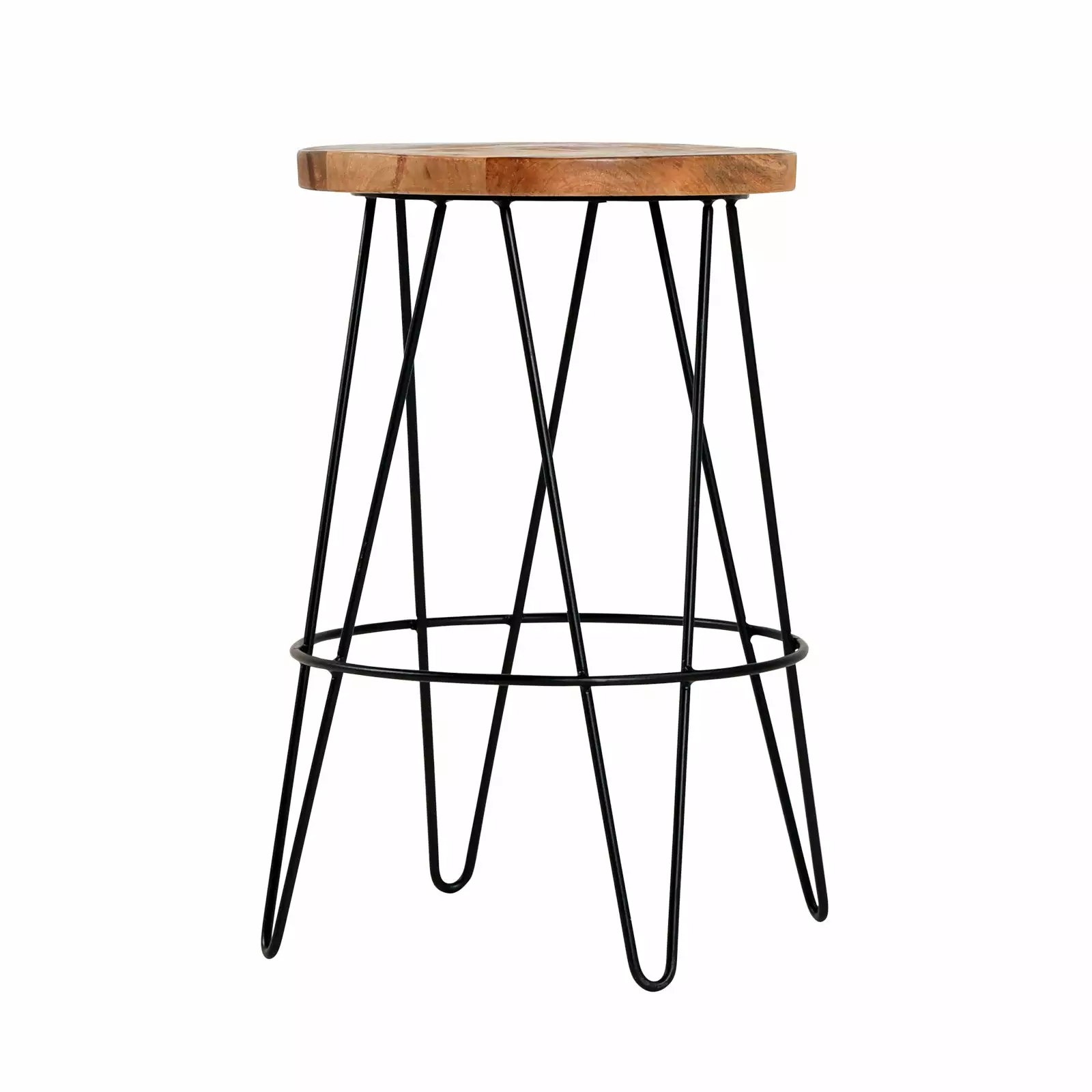 Kevytrakenteisen Deco-sarjan käytännöllinen Pin-jakkara tuo ilmavaa ilmettä sisustukseen. Deco Pin -jakkaran jaloiksi on taivutettu modernisti musta ohut kestävä metallirunko. Yksilöllinen puinen istuin on lujaa ja rouhean vaikutelman antavaa mangopuuta, joka sisustusmateriaalina huokuu kodikasta lämpöä.