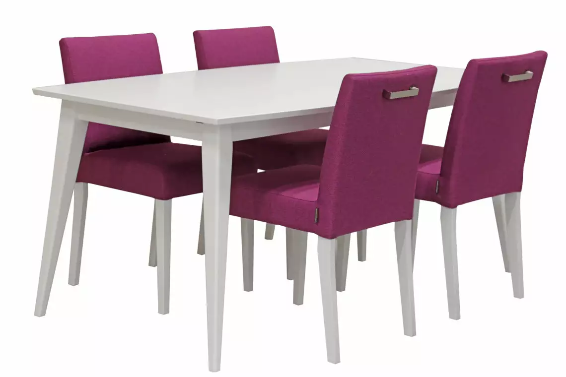 Deco-ruokapöytä on uudenlainen pöytämalli, joka kerää katseet. Sirot ja viistot jalat, sekä ohut kaarevalinjainen kansi keventävät pöydän ilmettä kauniisti. Tämän pöydän rungon materiaali on koivua ja kansilevy on mdf-huonekalulevyä.
