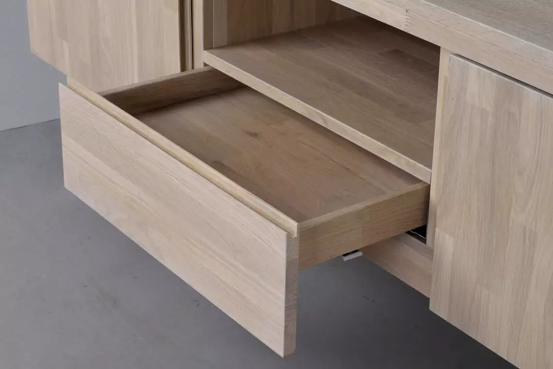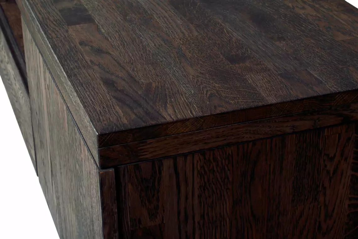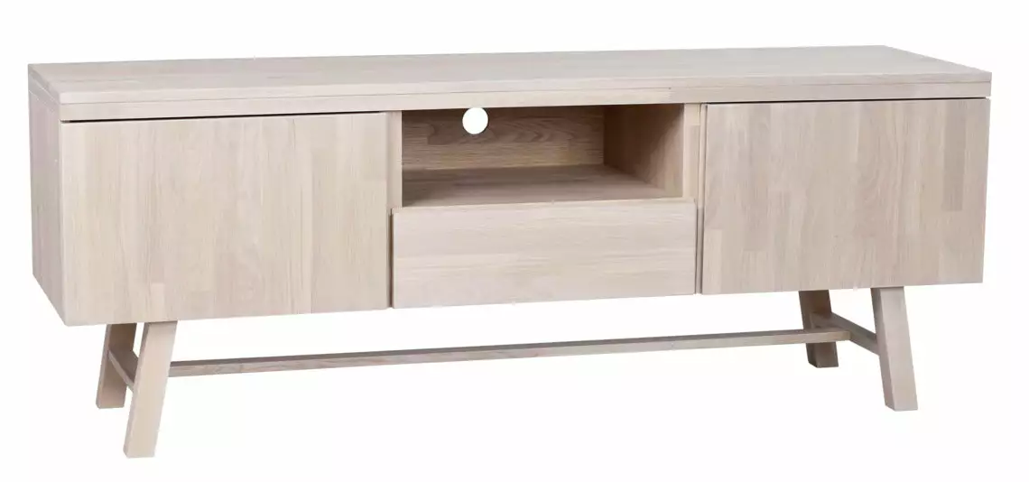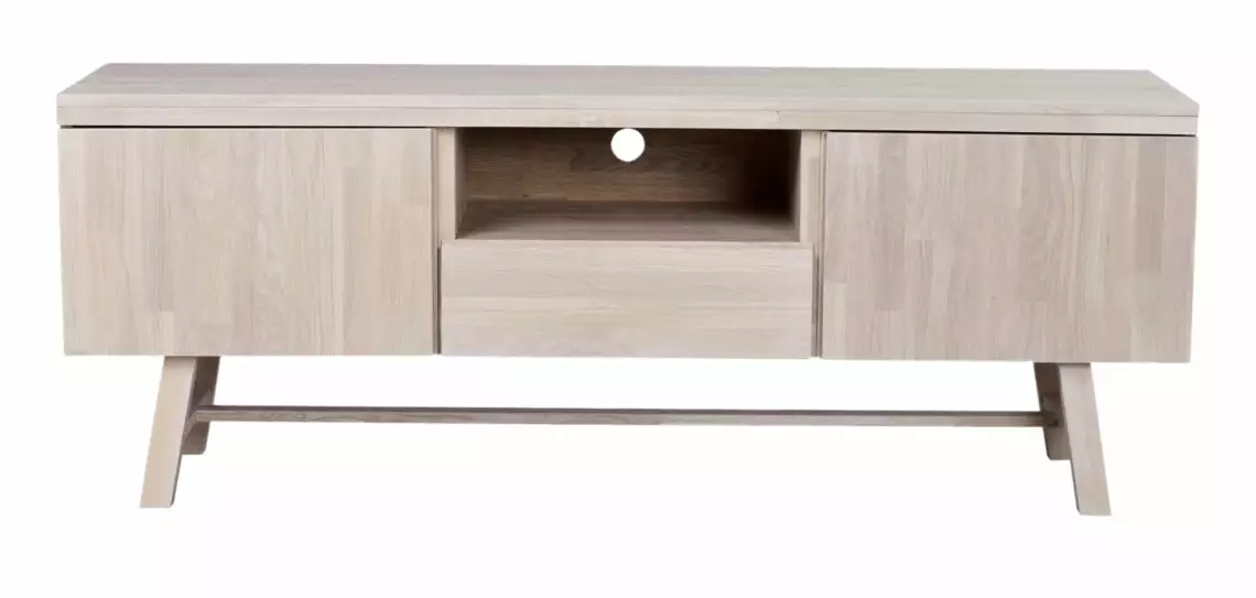 Massiivitamminen Brooklyn-sarjan tv-taso on komea medialaitteiden säilytystaso kotiin. Kookkaassa tv-tasossa on paljon säilytystilaa, sekä johtoaukollinen avohyllytila oheislaitteille. Todella tukevan viihdekeskuksen ovissa ja laatikoiden etulevyissä on Soft Close -mekanismilla toimivat vaimentimet, joiden ansiosta ne sulkeutuvat hitaasti.