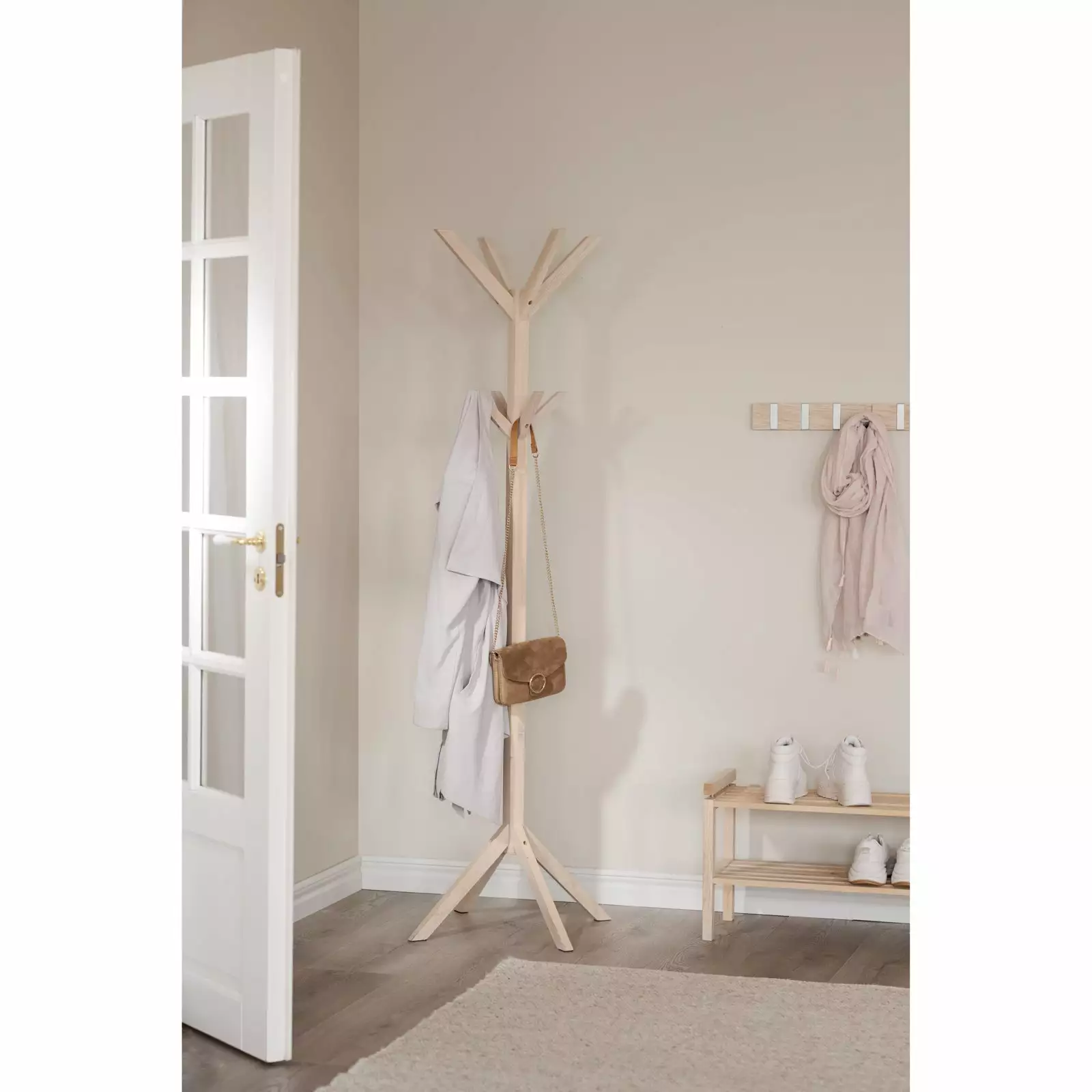 Confetti-pystynaulakko on perinteinen eteisen naulakko ulkotakeille ja asusteille modernilla skandinaavisella ilmeellä. Siirreltävä pystynaulakko tuo kaivattua lisätilaa kauden vaatteiden ja asusteiden säilytykseen. Naulakossa on paljon koukkuja, joihin mahtuu ripustamaan useamman henkilön käyttötakit nopeasti saataville. Puinen naulakko on tukeva ja helposti siirreltävissä.