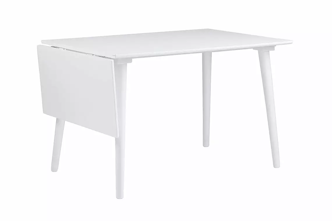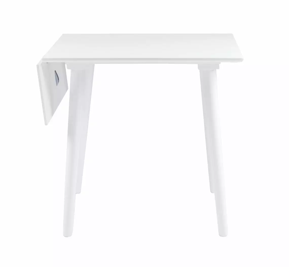 Pieneenkin tilaan sopivaa Lotta-ruokapöytää on saatavana kahdessa koossa, joista pienemmässä on 25 cm ja suuremmassa 40 cm klaffiosa. Klaffipala on helppo nostaa paikoilleen tarvitessasi lisätilaa. Pöydän kansi on valkoiseksi lakattua MDF-levyä.