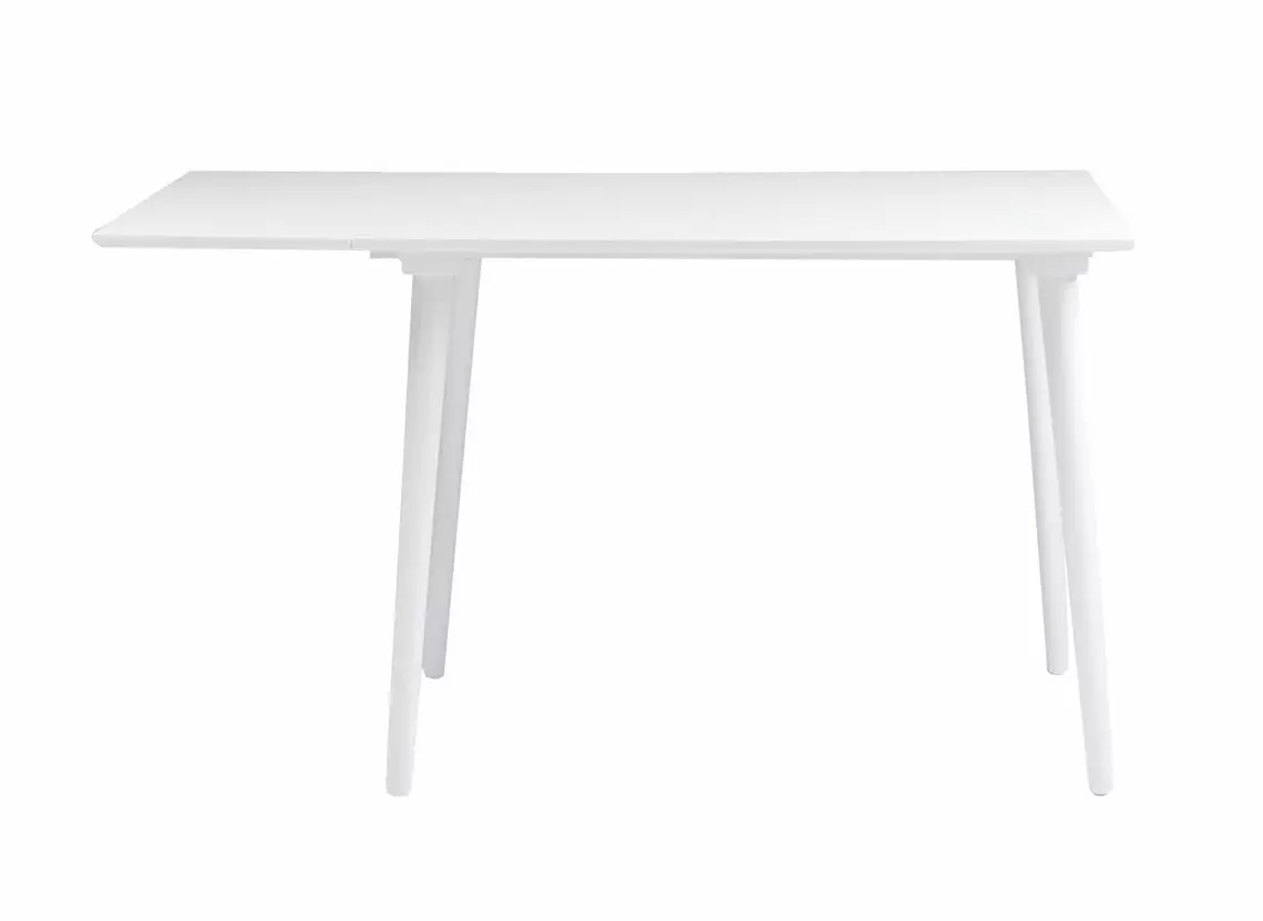 Käytännöllinen, retrohenkinen Lotta-klaffipöytä sopii pienempäänkin ruokailutilaan. Lotta-pöytä on ulkoasultaan siro ja sen valkoiseksi lakatut kumipuujalat menevät kauniisti viistoon. Nostamalla jatkopalan ylös, saat käyttöösi suuremman pöydän jossa on tilaa useammallekin vieraalle.