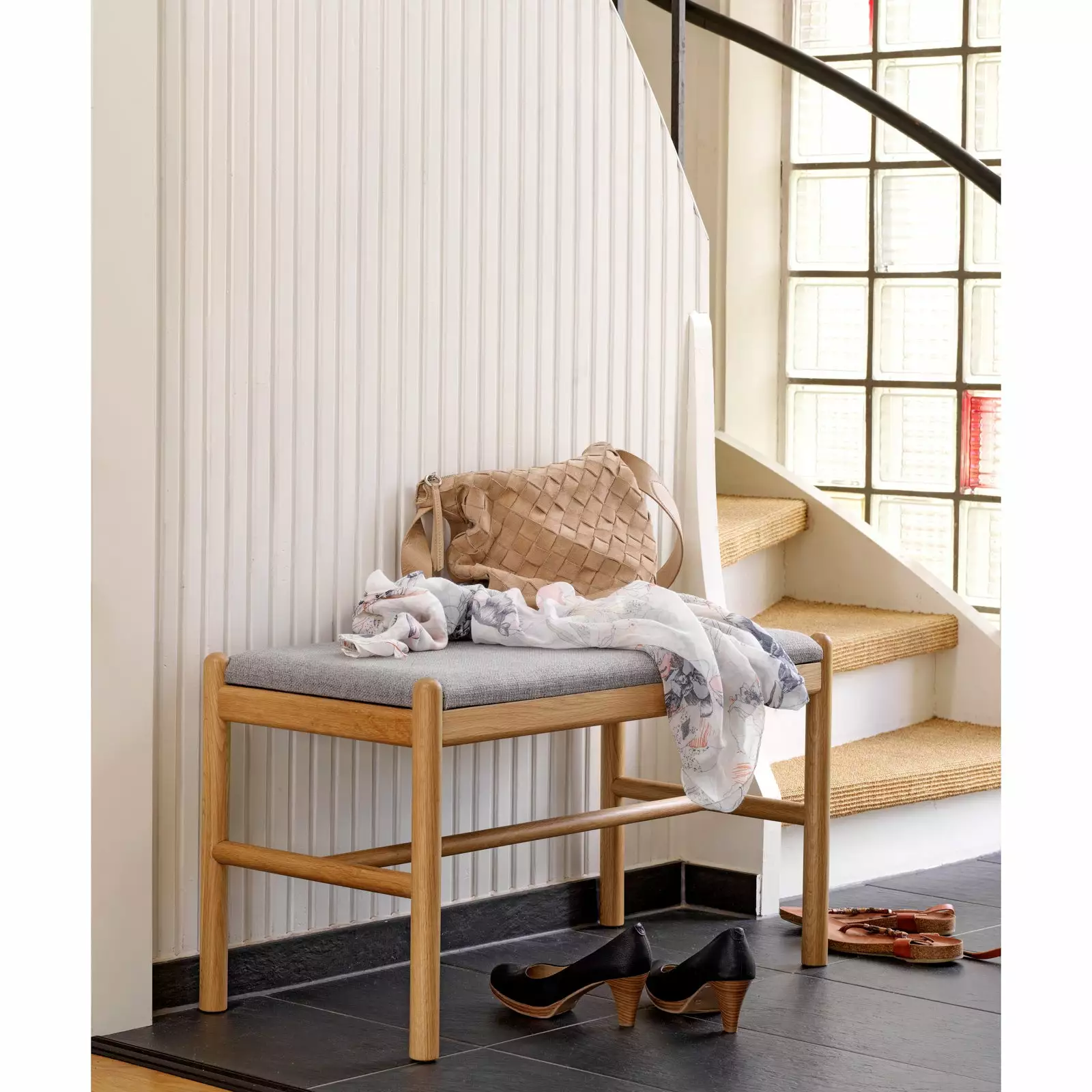 Milford-eteispenkki on siro ja linjakas penkki, joka huokuu hillittyä tyylikkyyttä. Muotoilultaan eleetön eteispenkki sopii moneen tilaan ja sisustustyyliin. Näppärän kokoinen Milford-penkki on käytännöllinen valinta esimerkiksi eteiseen istuimeksi kenkien sitomista varten, mutta sitä voi hyödyntää myös esimerkiksi makuuhuoneessa pukeutumispenkkinä. Milford-eteispenkissä on tammirunko ja se on verhoiltu kestävällä polyesterikankaalla.