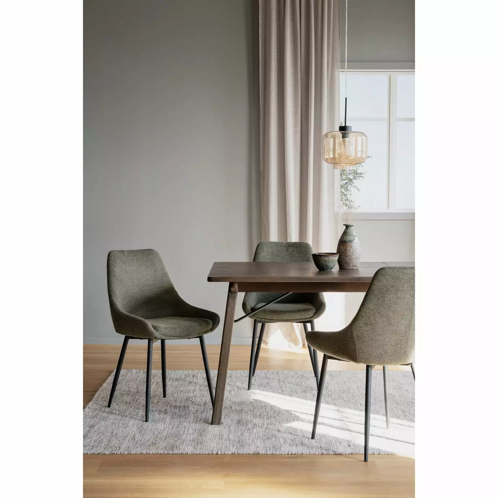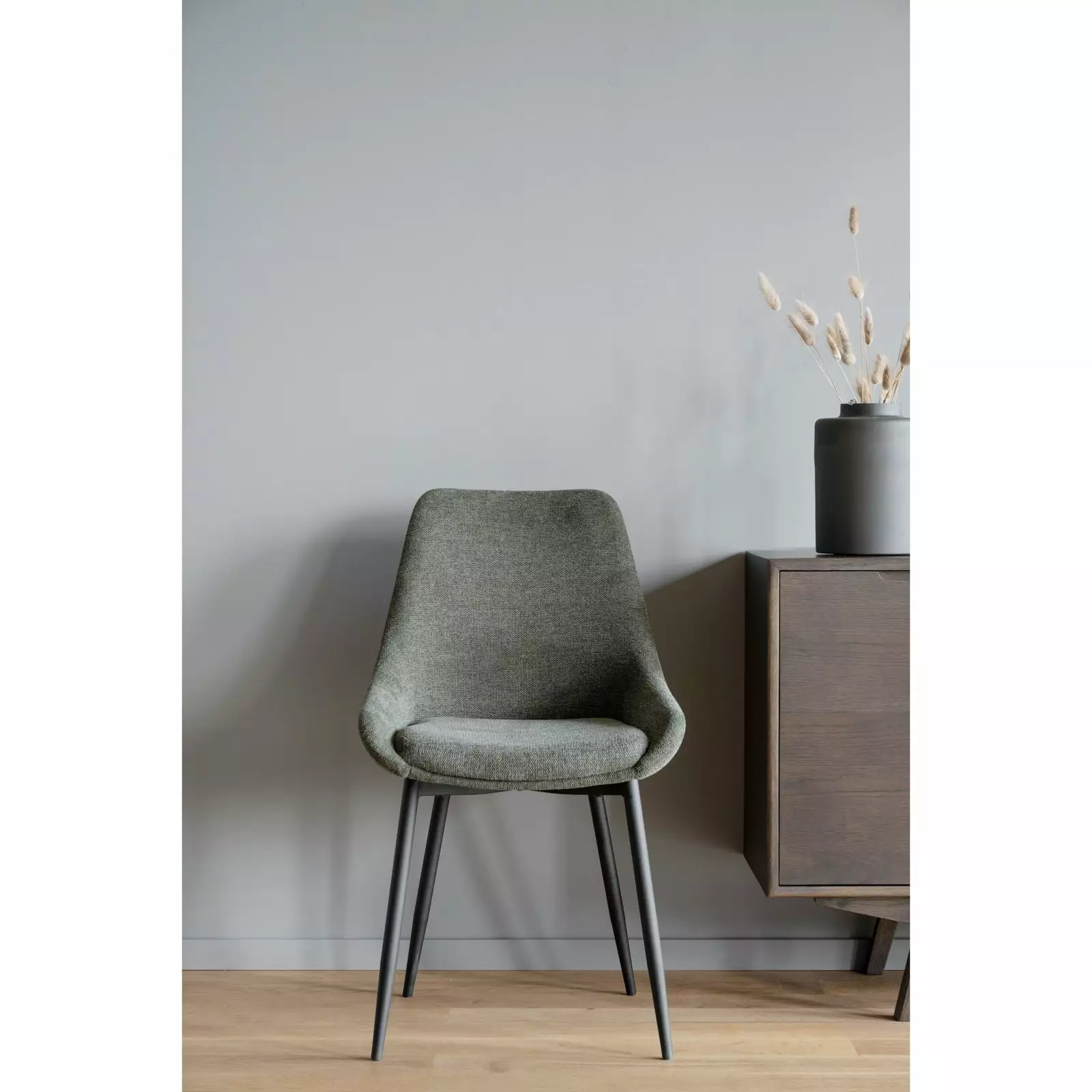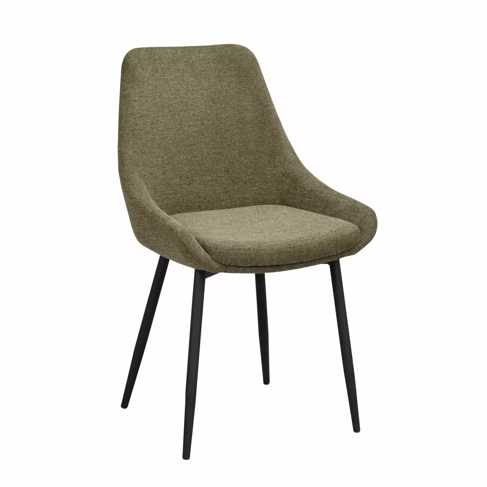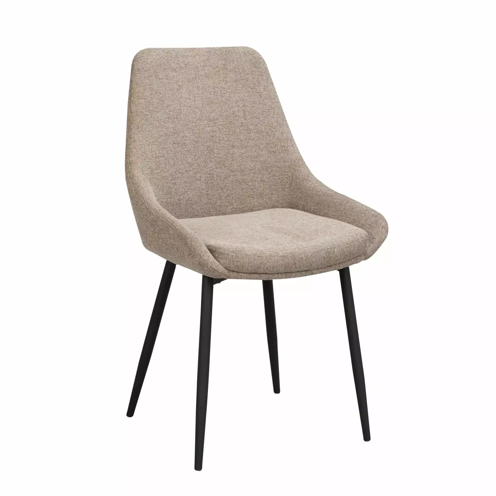 Moderni Sierra-tuoli hurmaa kupinmuotoisella istuinosallaan. Tuolissa on pehmustettu istuin- ja selkänojaosa trendikkäällä kangasverhoilulla. Tuolissa on hieman viistot mustat jauhemaalatut metallijalat.