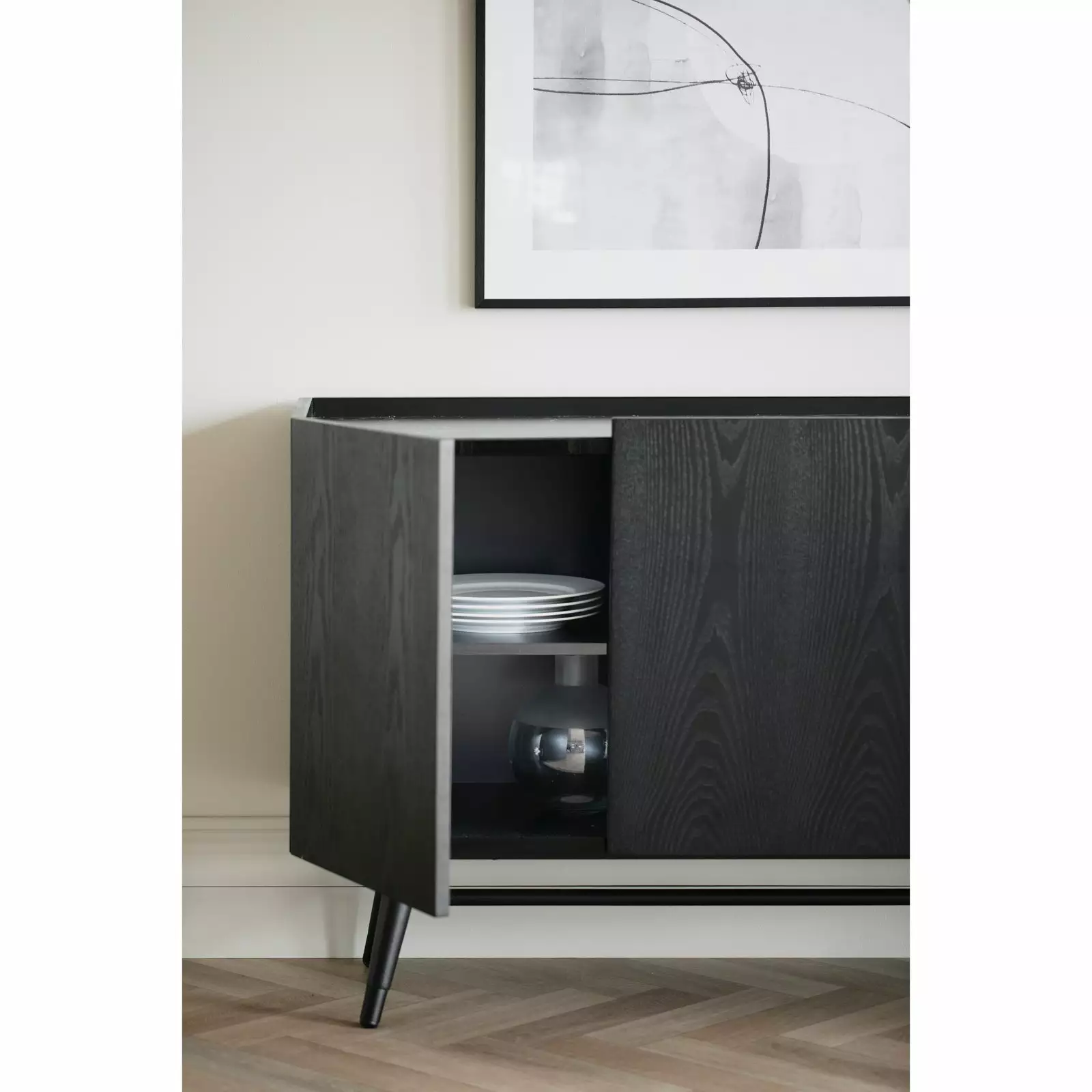 Näyttävä kokomusta Springdale-senkki sopii moderniin kotiin säilytysratkaisuksi. Senkin keraaminen kansi on hieman upotettu, joten kodin pientavarat pysyvät myös kannen päällä järjestyksessä. Kannessa on mielenkiintoinen marmorikuviointi, joka on näyttävä katseenvangitsija. Senkissä on lisäksi runsaasti säilytystilaa ja siinä on siirreltävät hyllytasot sekä pehmeästi sulkeutuvat Soft Close -ovet.