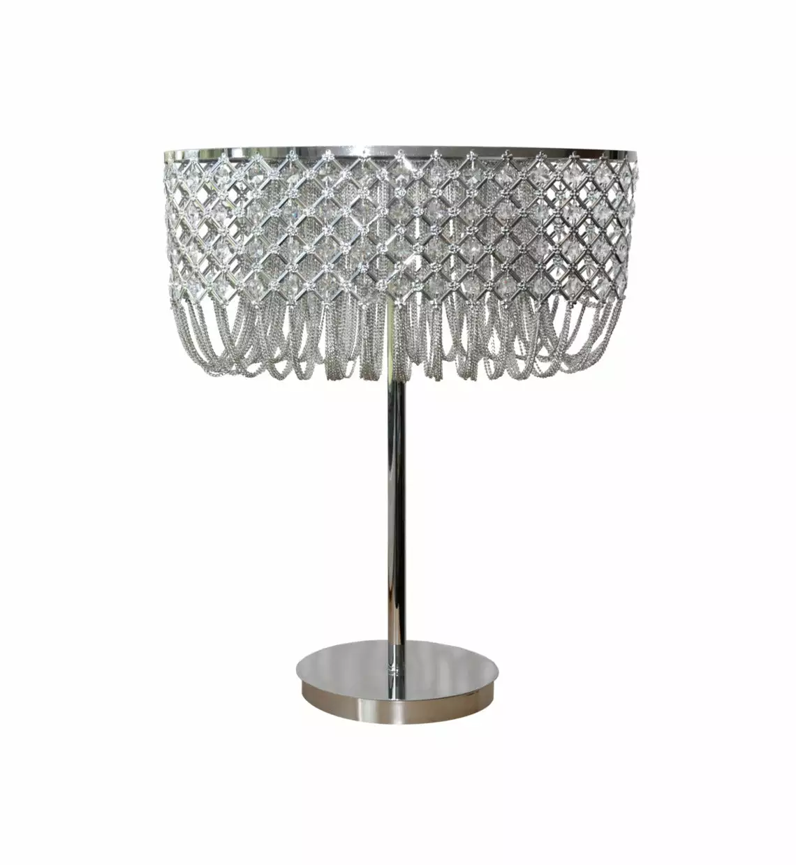 Chesterfield-pöytävalaisin on Design by Grönlundin näyttävä ja upea kristallikoristeinen valaisin. Kauniisti laskeutuvat ketjut koristavat Chesterfield-pöytävalaisimen varjostinta. Valaisimen kromin värinen runko viimeistelee tyylin.