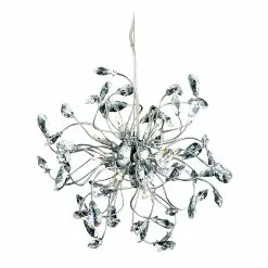 Foggia-kattokruunu on upea kristallikoristeinen kattovalaisin, jossa on kaunis ja moderni muotoilu. Kristallivalaisimen taivutetut muodot vangitsevat katseet ja taitavasti asetellut kirkkaat kristallikoristeet heijastavat valon kauniisti ympäri huonetta. Foggia-kristallivalaisimella luot kotiisi hieman glamouria ja hienostunutta eleganssia.