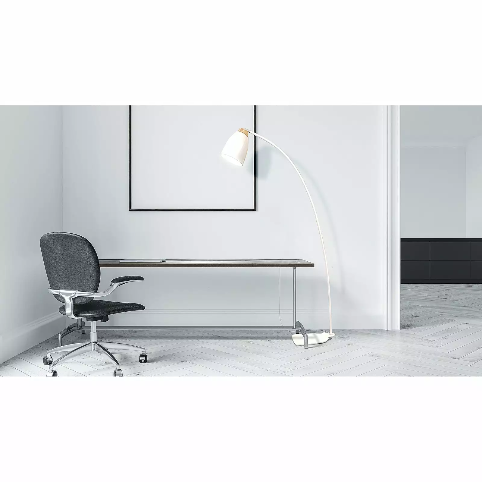 Sulavalinjaisessa ja tyylikkäässä Houston-lattiavalaisimessa on kaunis kaareva runko ja suunnattava valaisinkupu. Tyylikkään ja modernin ilmeen kruunaa pieni saarnipuinen yksityiskohta kuvun yläosassa. Kaarevan jalkaosan ansiosta valaisin ulottuu helposti esimerkiksi lukuvaloksi nojatuolin viereen, tai vaikka työvaloksi työpöydän yläpuolelle. Suunnattaan kuvun avulla kohdennat valon haluamaasi suuntaan.
