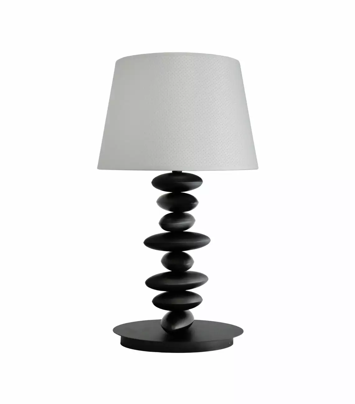 Design by Grönlundin Stone-pöytävalaisin on persoonallinen valaisin. Stone-valaisimen musta varsi muistuttaa pinoon asetettuja kiviä. Musta runko ja harmaa varjostin luovat harmonisen kokonaisuuden.