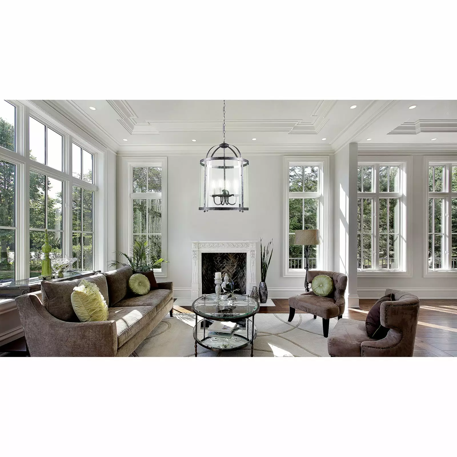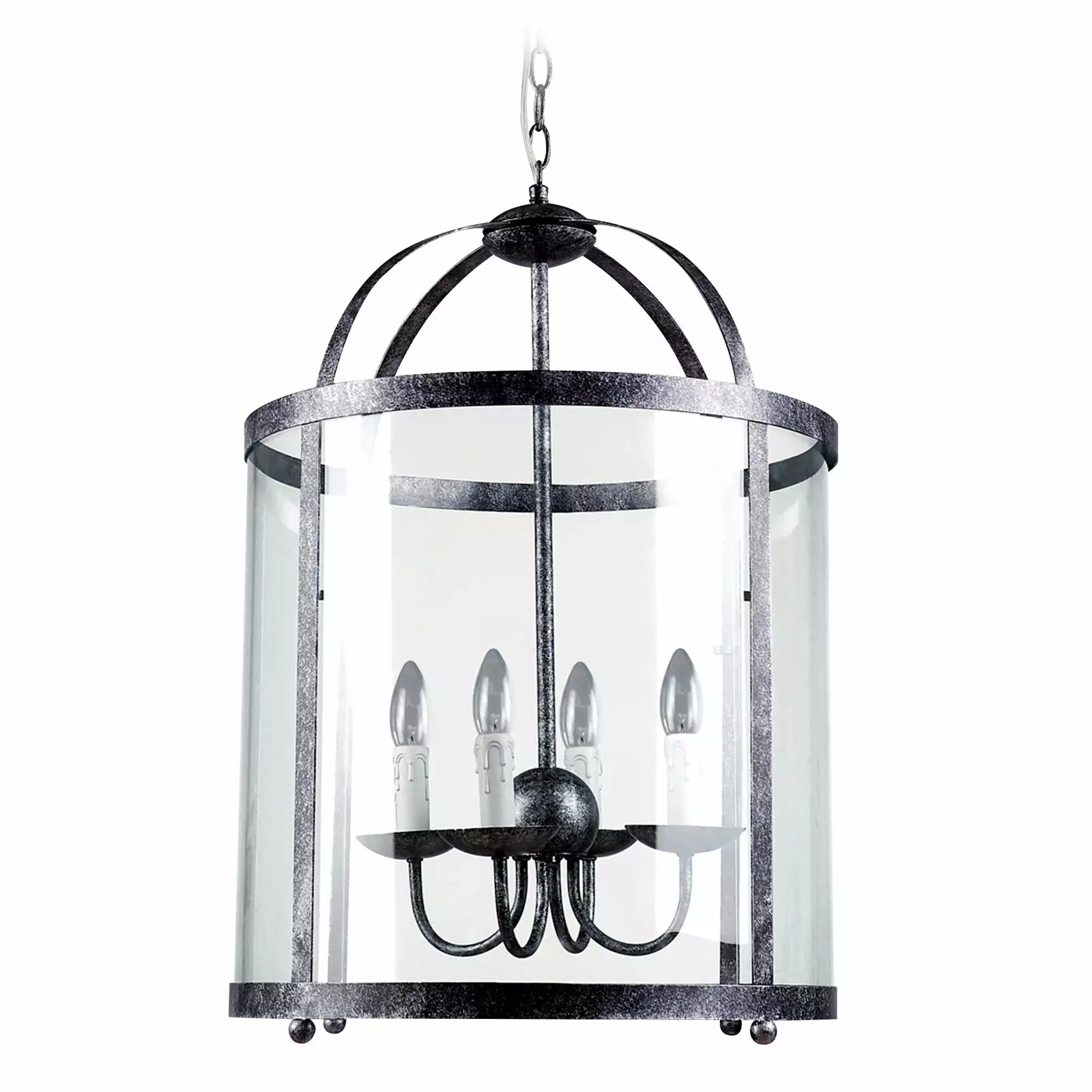 Upea lyhty-kattovalaisin! Valtava Venetsia-kattolyhty soveltuu niin vanhaan hirsimiljööseen, kuin vastapainoksi hyvinkin moderniin ja pelkistettyyn ympäristöön. Suurta, halkaisijaltaan 46 cm antiikinharmaata teräksistä kattokruunun runkoa ympäröi kirkas lasi. Lasin sisäpuolella on neljä lyhtykynttilän muotoista lamppua.