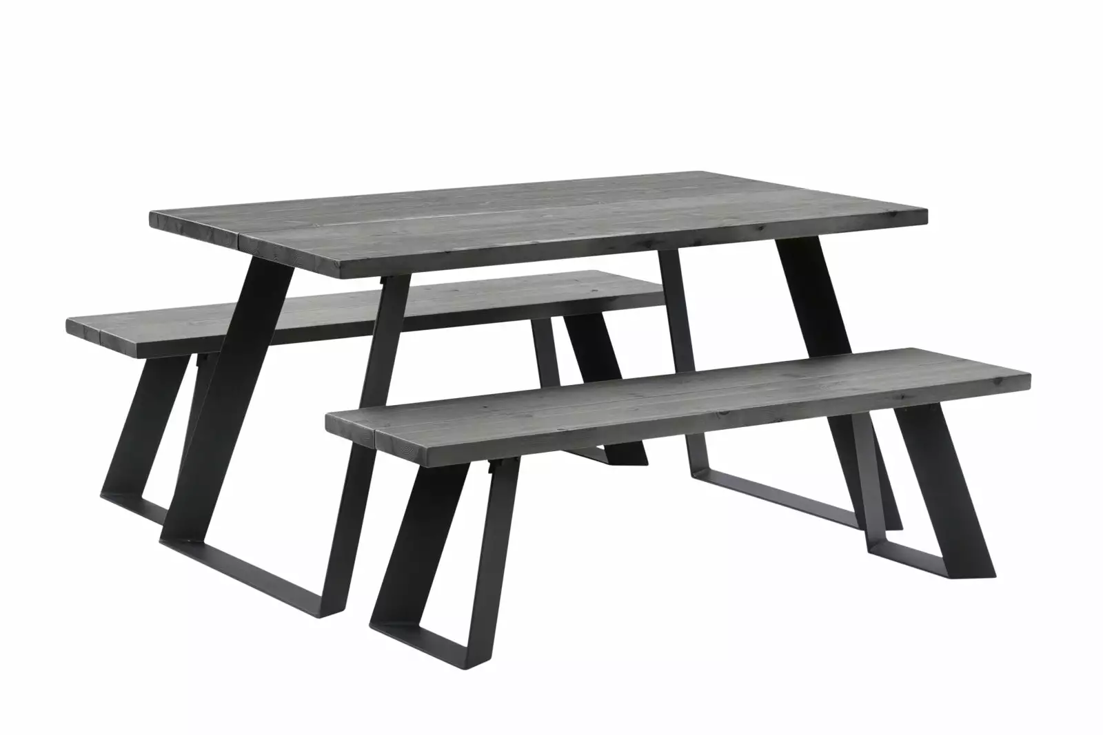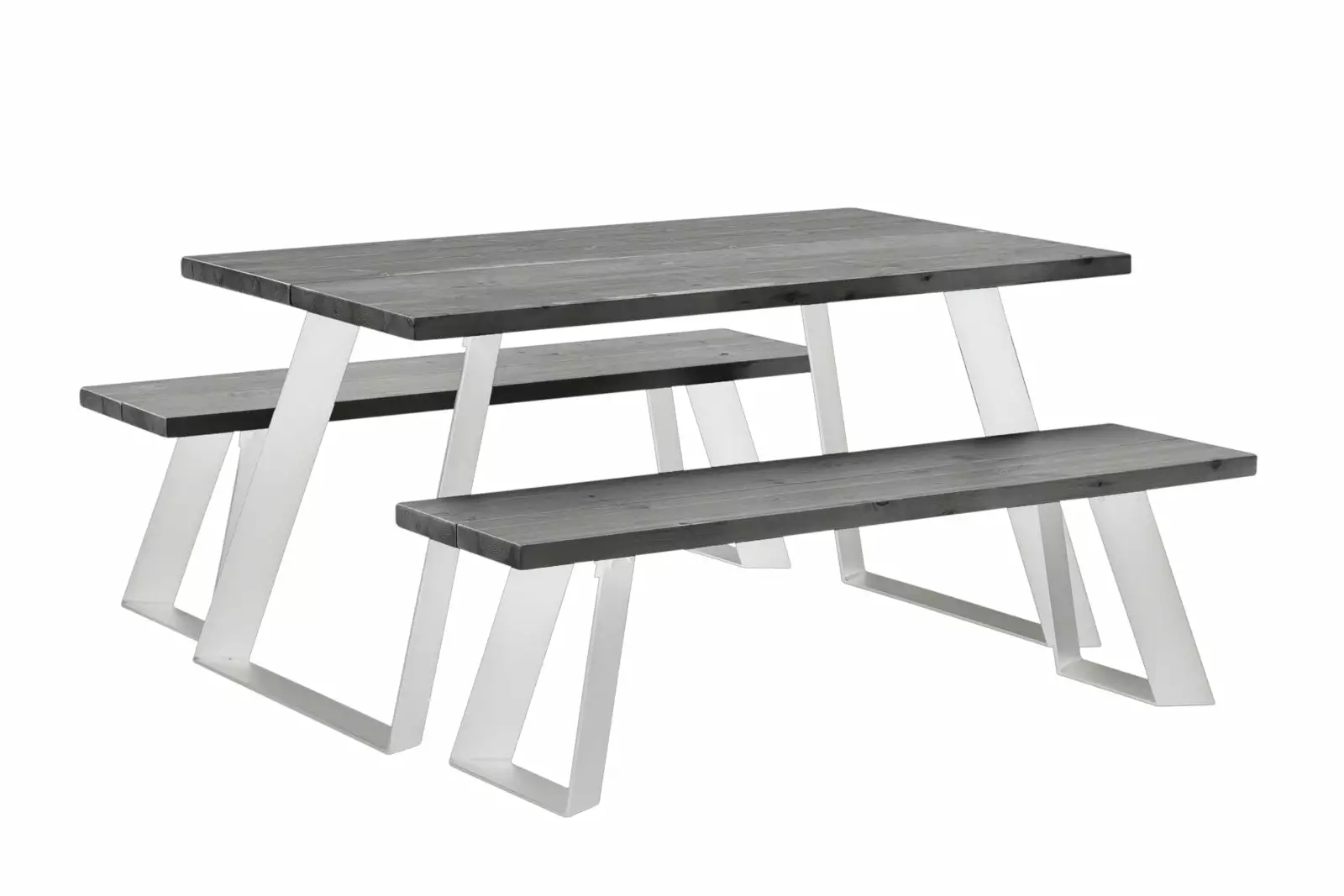 Upea Venla-penkkiryhmä on nykyaikainen versio perinteisestä pirttikalustosta. Se on näyttävä ilmestys ja sopii sekä sisä- että ulkokäyttöön. Saat räätälöityä mieleisesi version pöydästä ja penkeistä valitsemalla kansivärin sekä jalkamallin ja jalkojen värin. Tässä Venla-penkkiryhmän mallissa on vinot metallijalat. Kahdesta lankusta valmistettu pöydänkansi ja penkin istuin ovat vahattua ja harjattua massiivimäntyä.