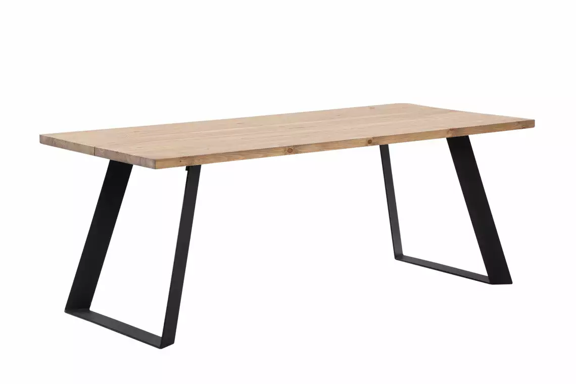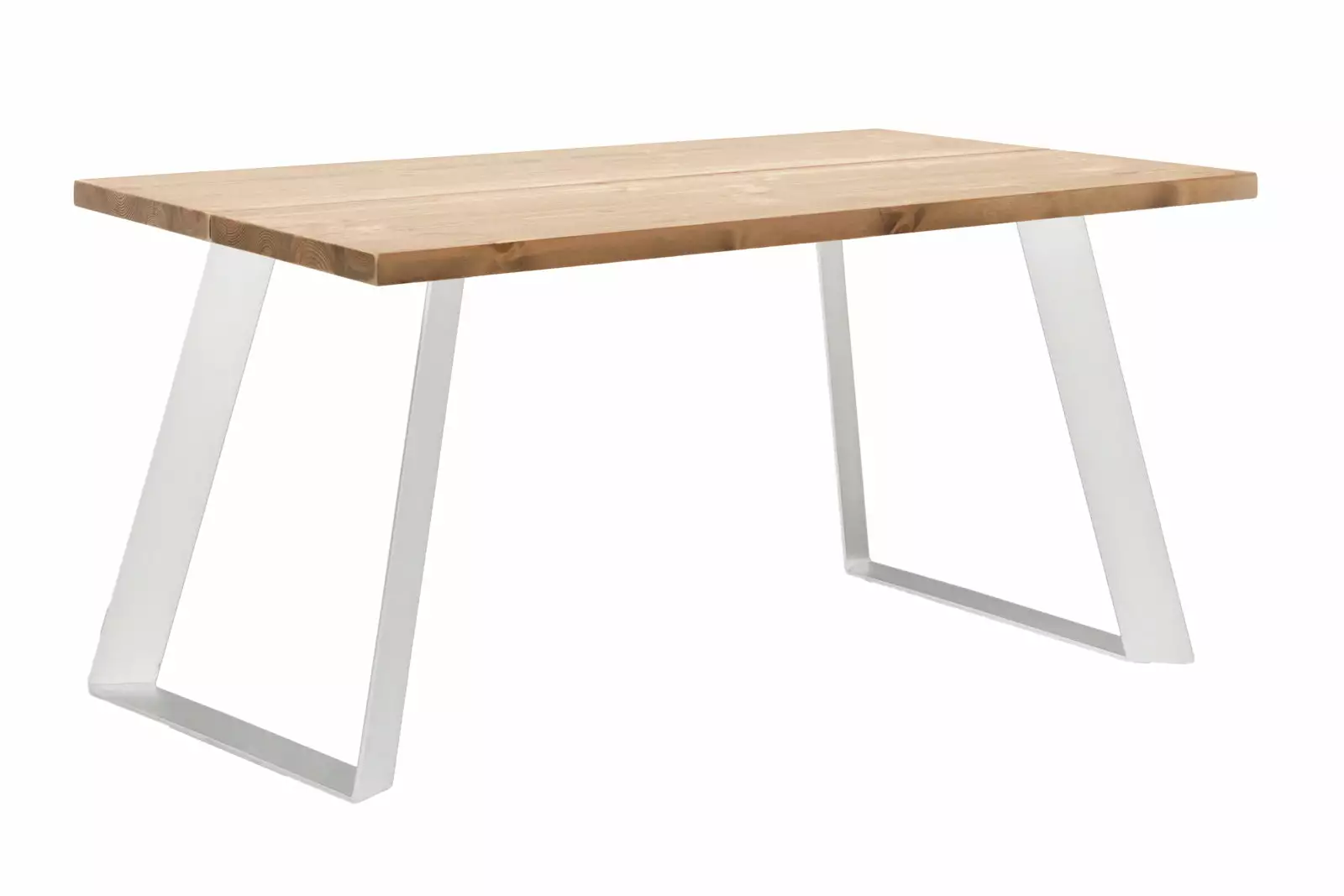 Upea Venla-lankkupöytä on näyttävä ilmestys ja se sopii sekä sisä- että ulkokäyttöön. Monipuolisesta pöydästä saat räätälöityä mieleisesi version valitsemalla kansivärin sekä jalkamallin ja jalkojen värin. Tässä Venla-pöydän mallissa on vinot metallijalat. Pöydässä on kahdesta lankusta valmistettu kansi, jonka materiaali on vahattua ja harjattua massiivimäntyä. Viimeistele tyyli valitsemalla ruokailuryhmään saman sarjan penkki tai mieleisesi tuolit Stemman laajasta valikoimasta.